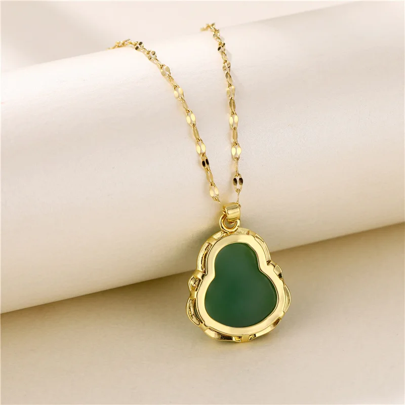 Кулон с зеленым Буддой из титановой стали, женское ожерелье с большим животом, корейская мода, халцедон