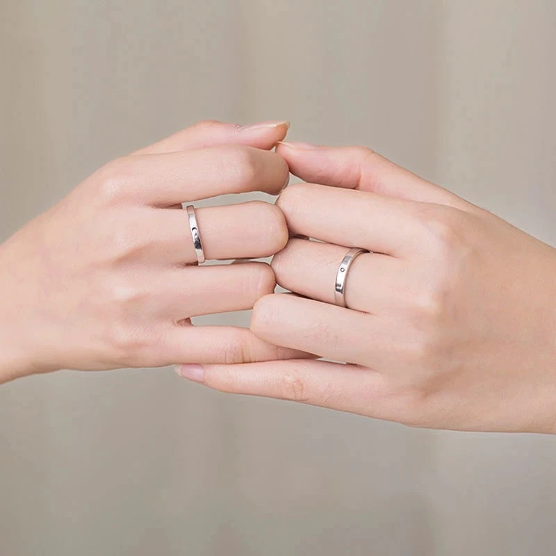 Доставка очень быстрая! Пара колец пришла в обычном почтовом пакете- пупырке. Однако...немного разочарована. По фото края у колец и гравировка четкая, само кольцо, думала, будет шире, а по факту его толщина 2-2,5 мм, края заглажены и надпись читается плохо. К тому же, это не серебро, поэтому кольцо нежелательно мочить. Из плюсов могу отметить то, что размер регулируется и это, действительно, очень удобно.