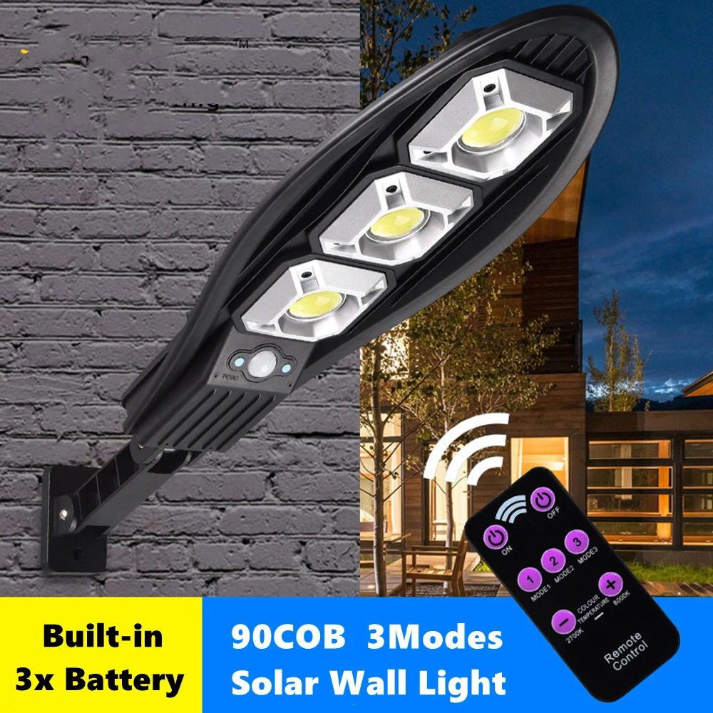 60/90COB Солнечный настенный светильник уличный светильник датчик движения с 3 режимами дистанционного управления водонепроницаемый светильник ing для сада гаража