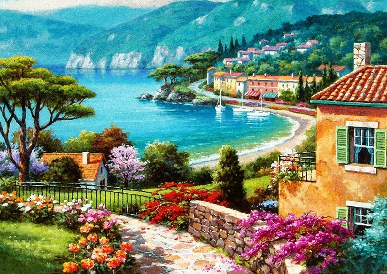 Приморский городской пейзаж ручной работы Наборы для вышивания DIY ...