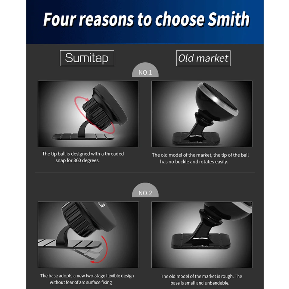 Автомобильный держатель для телефона Sumitap, магнитная подставка для мобильного телефона с шаровой головкой 17 мм, универсальный кронштейн, держатель для телефона на присоске в автомобиле
