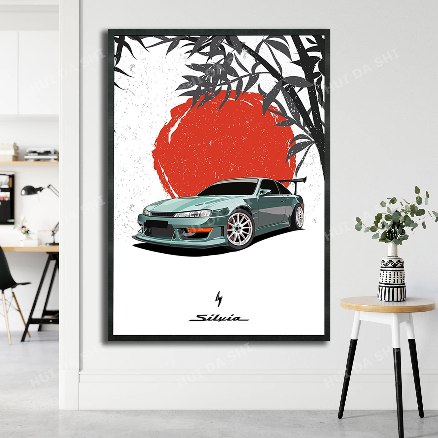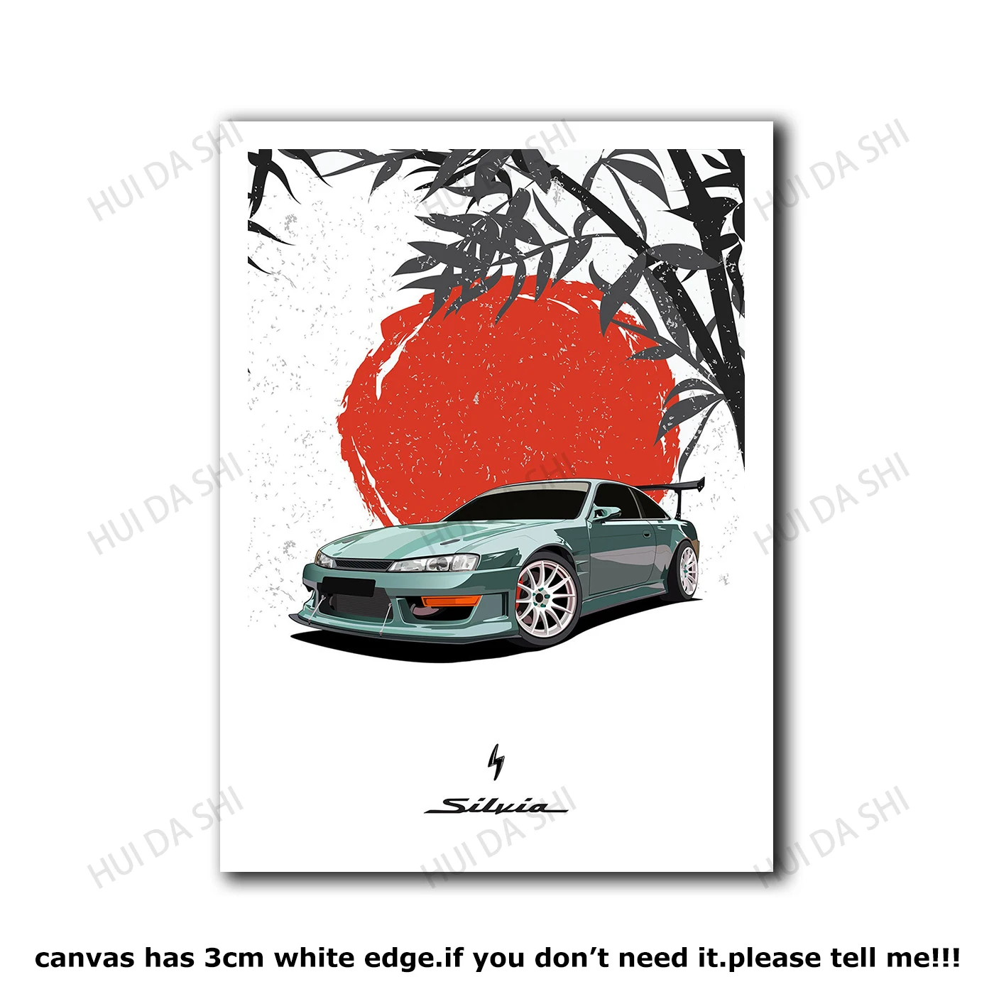 Nissan Silvia S14 Полный японский BG иллюстрация холст печать плакат-A4A3 портрет ограниченная печать JDM автомобильный плакат