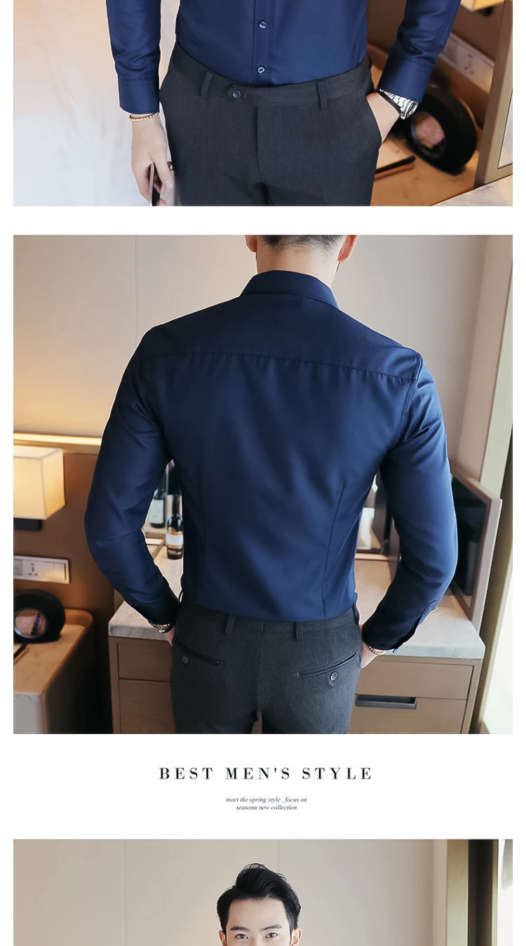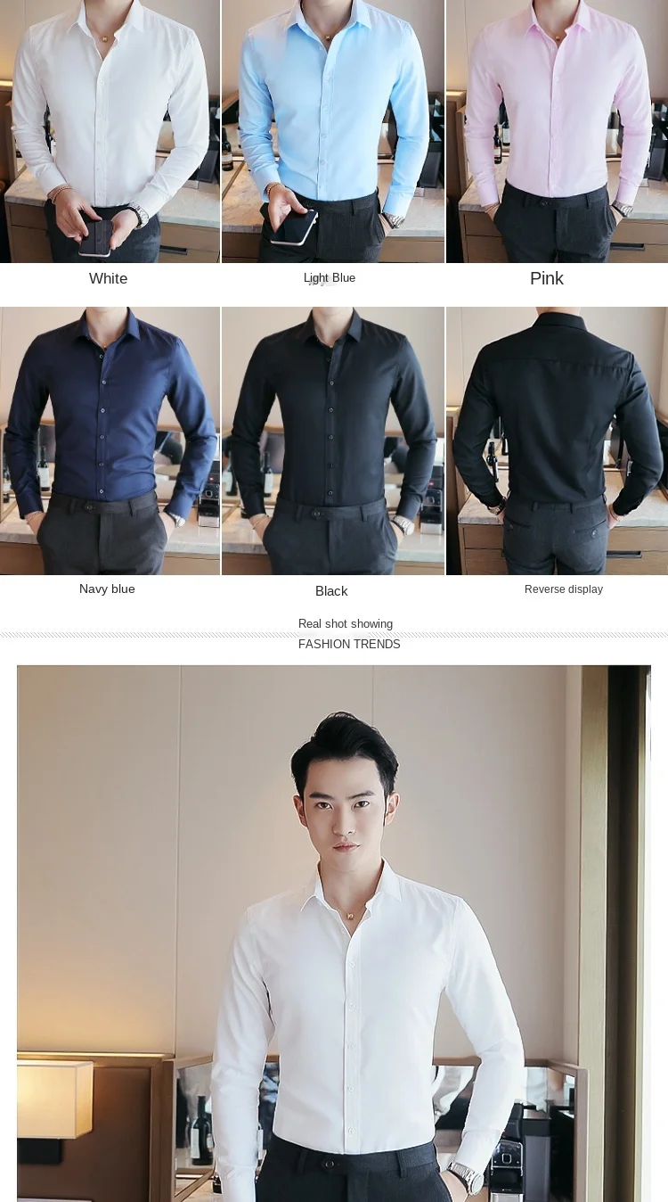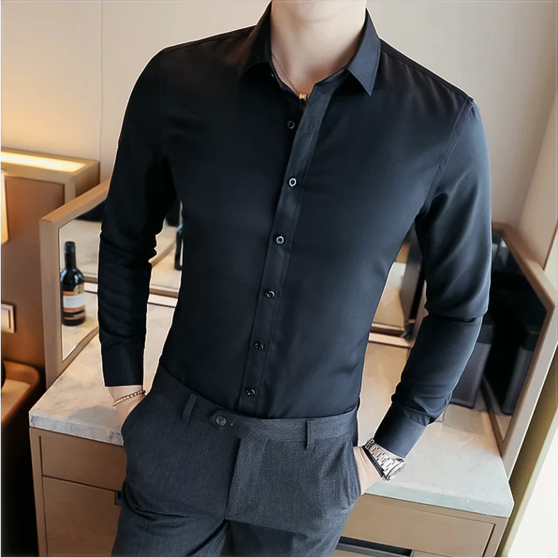 Мужская рубашка новая однотонная облегающая простая модная мужская одежда высокого качества с длинными рукавами трендовая белая рубашка без складок