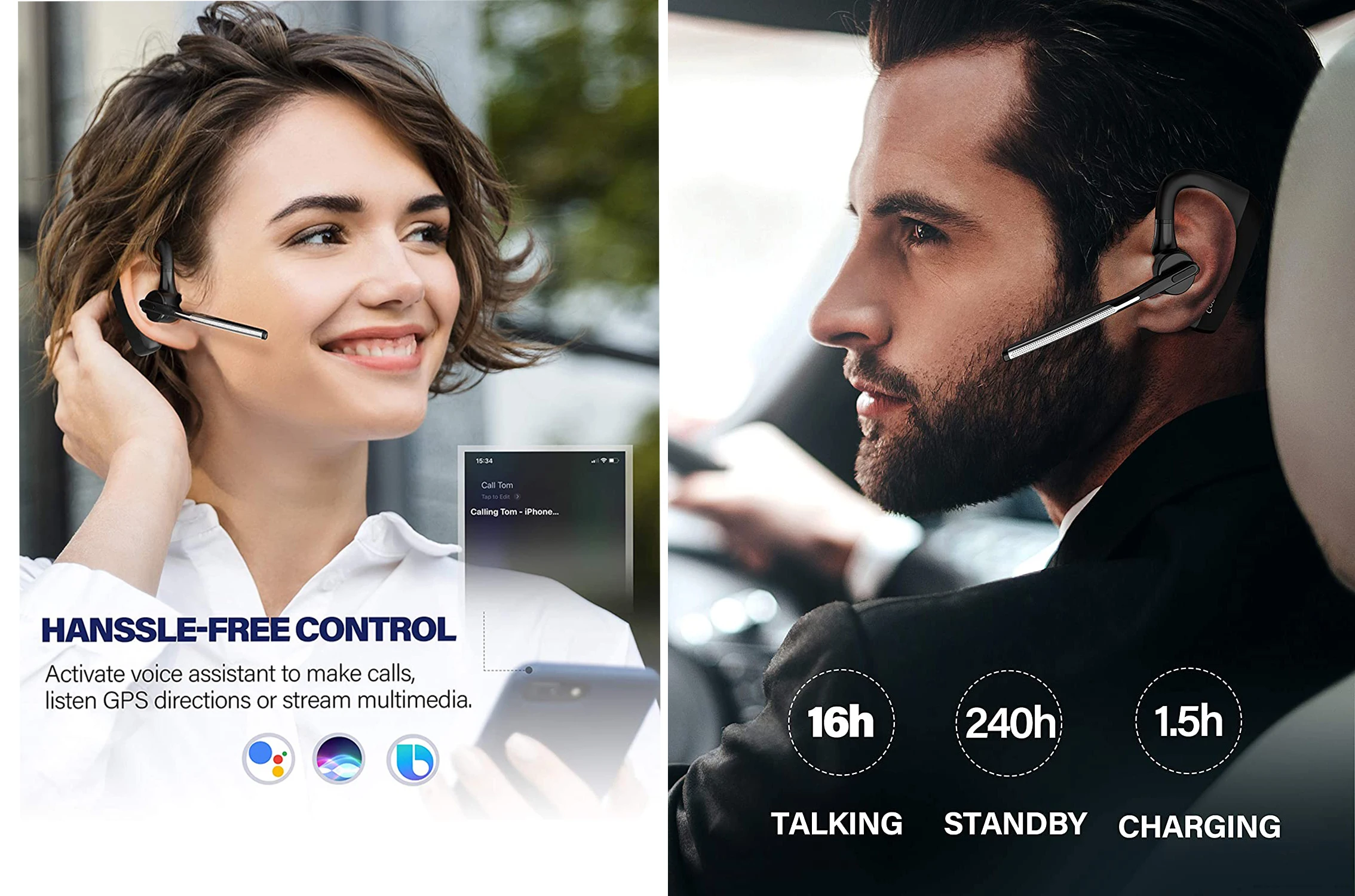 Продолжительная батарея: Эта гарнитура может совершать звонки, воспроизводить музыку, видео, аудиокниги, голосовую почту и навигационные инструкции до 16 часов и ждать в режиме ожидания до 10 дней при одной зарядке.