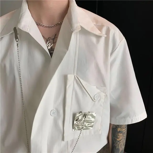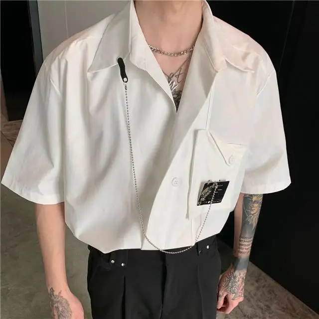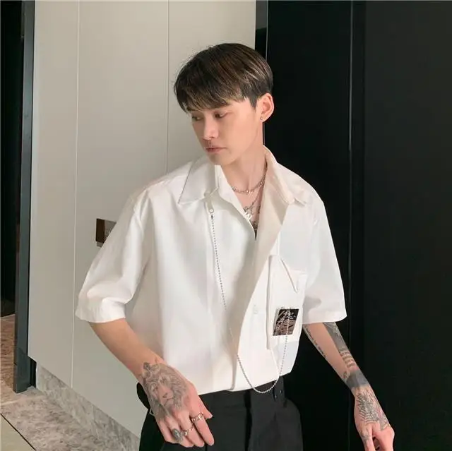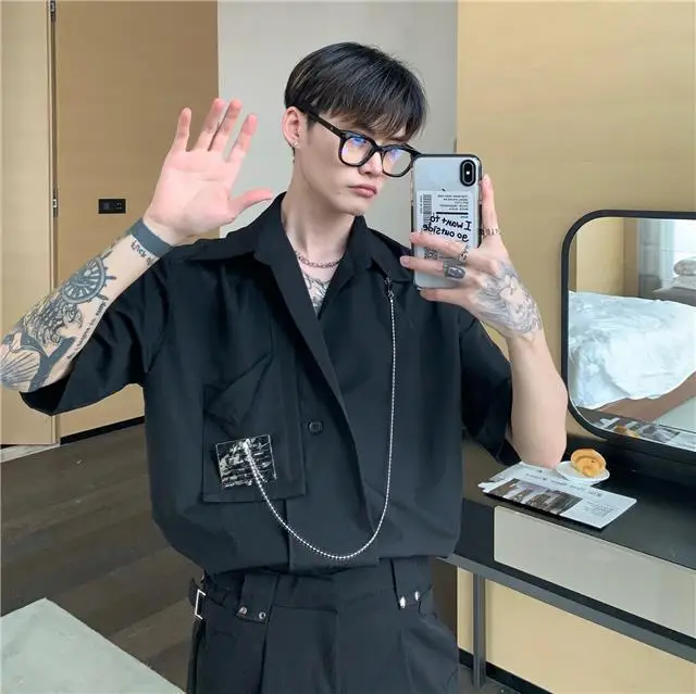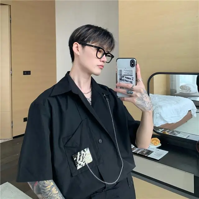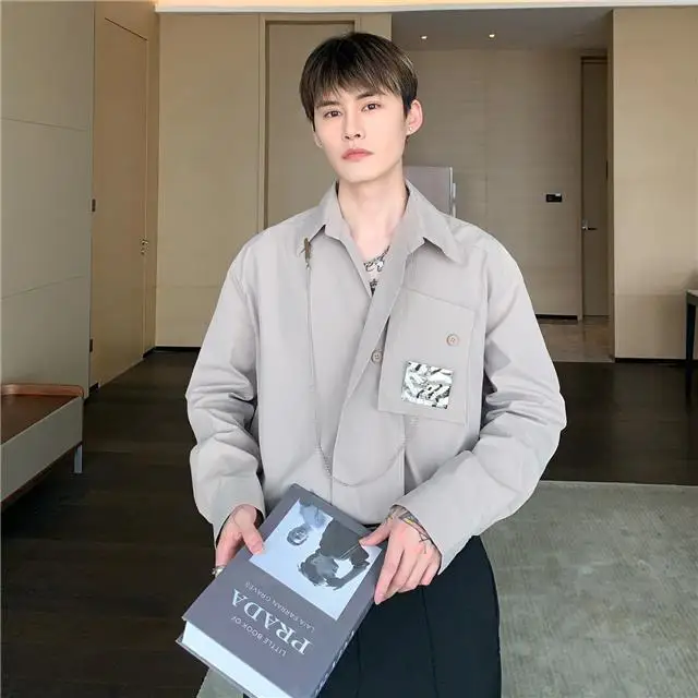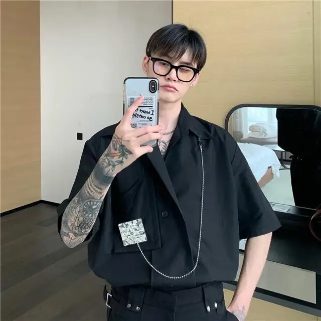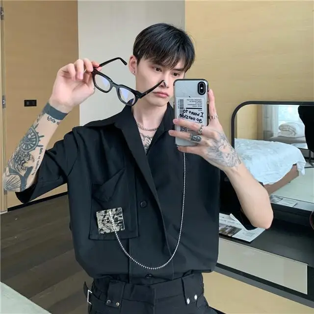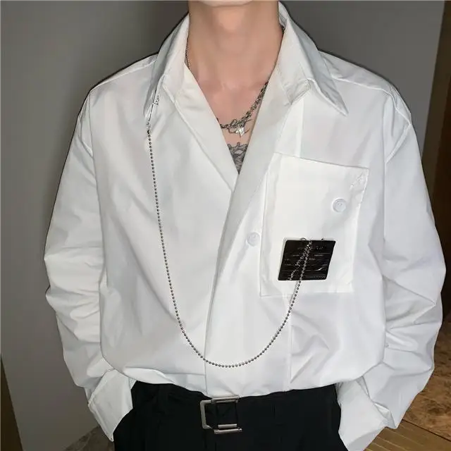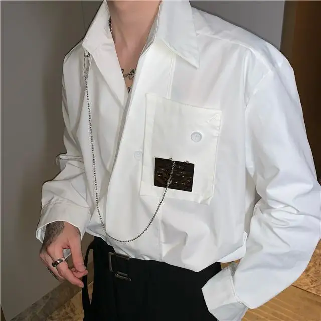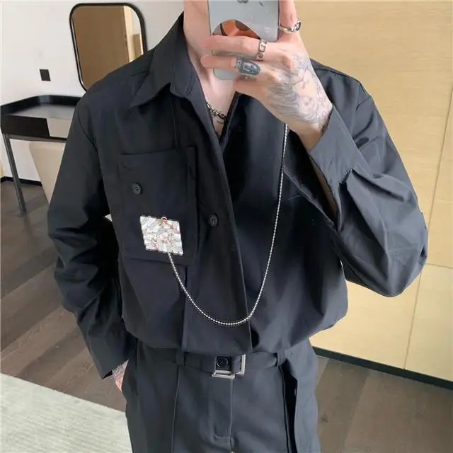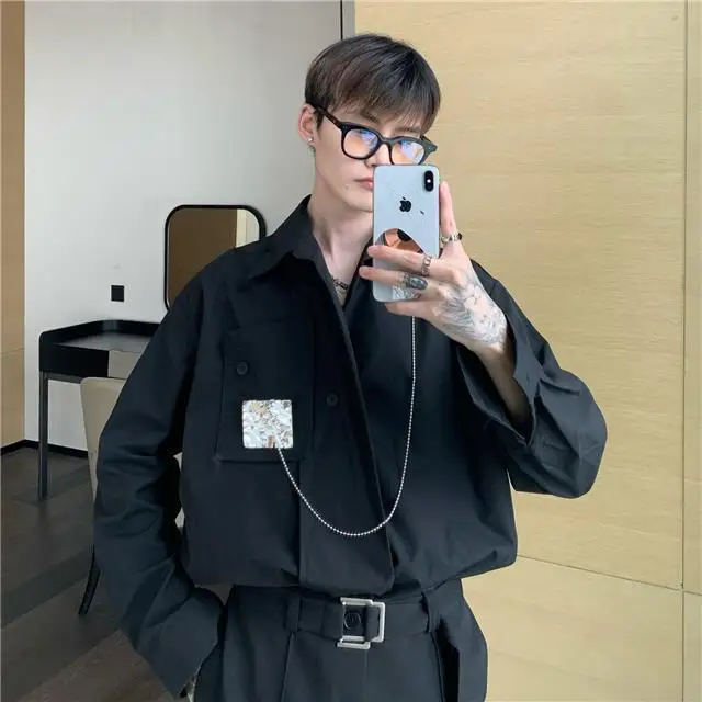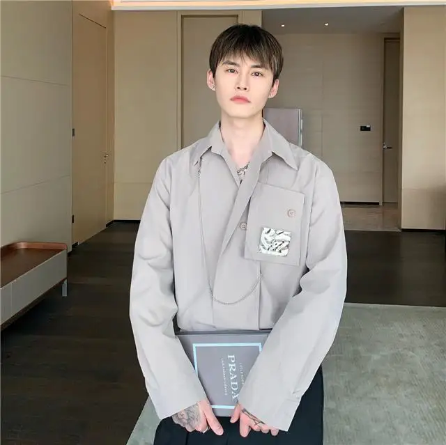 Рубашка мужская с длинным рукавом, шелковая Съемная блузка с металлическим дизайном, универсальная сетчатая рубашка в Корейском стиле, улучшенное чувство миниатюра, красный цвет