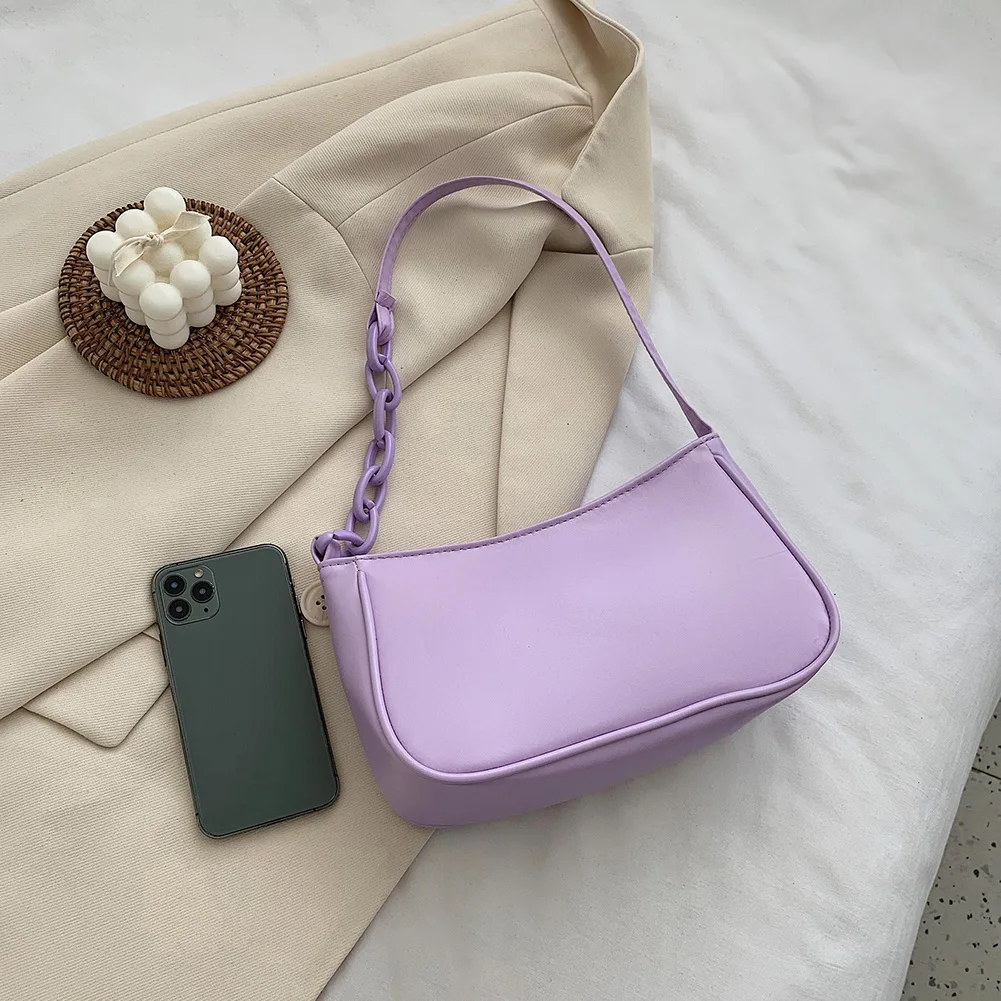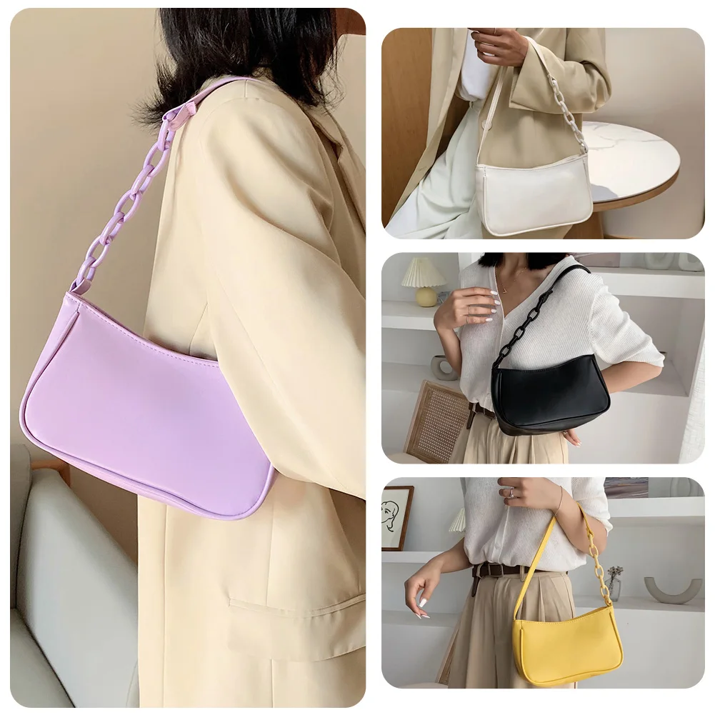 Женские повседневные сумки-мессенджеры через плечо из искусственной кожи, однотонные сумки-тоуты на цепочке через плечо, Молодежная женская сумка простые универсальные под подмышек