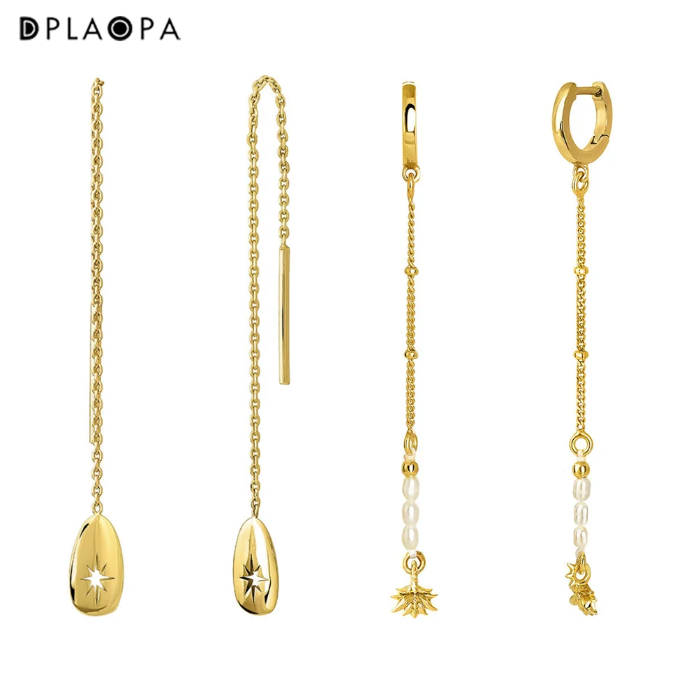 DPLAOPA 925 пробы серебряные серьги-кольца с подвеской и золотым покрытием, серебряный жемчуг, женские роскошные серьги для пирсинга