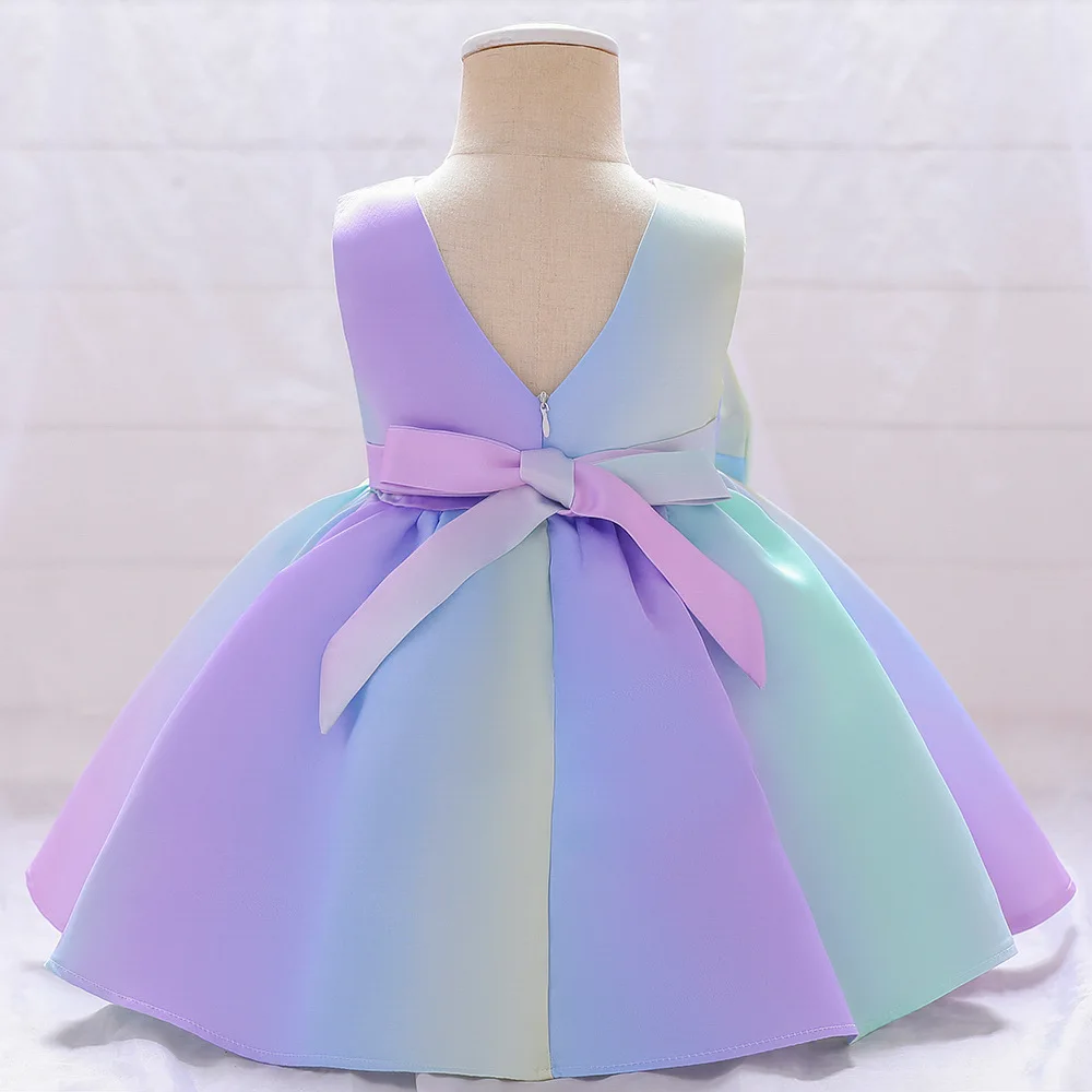 Милое платье принцессы с бантом для рождественской вечеринки, милое Радужное платье карамельных цветов для девочек, детское карнавальное платье, детский подарок на день рождения