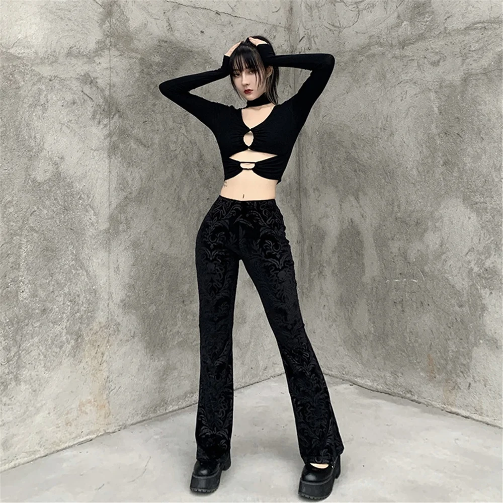 Женские бархатные брюки-клеш DAILOU Y2k, осенние брюки с высокой талией, праздничная одежда, эластичные брюки, облегающие брюки в стиле хиппи