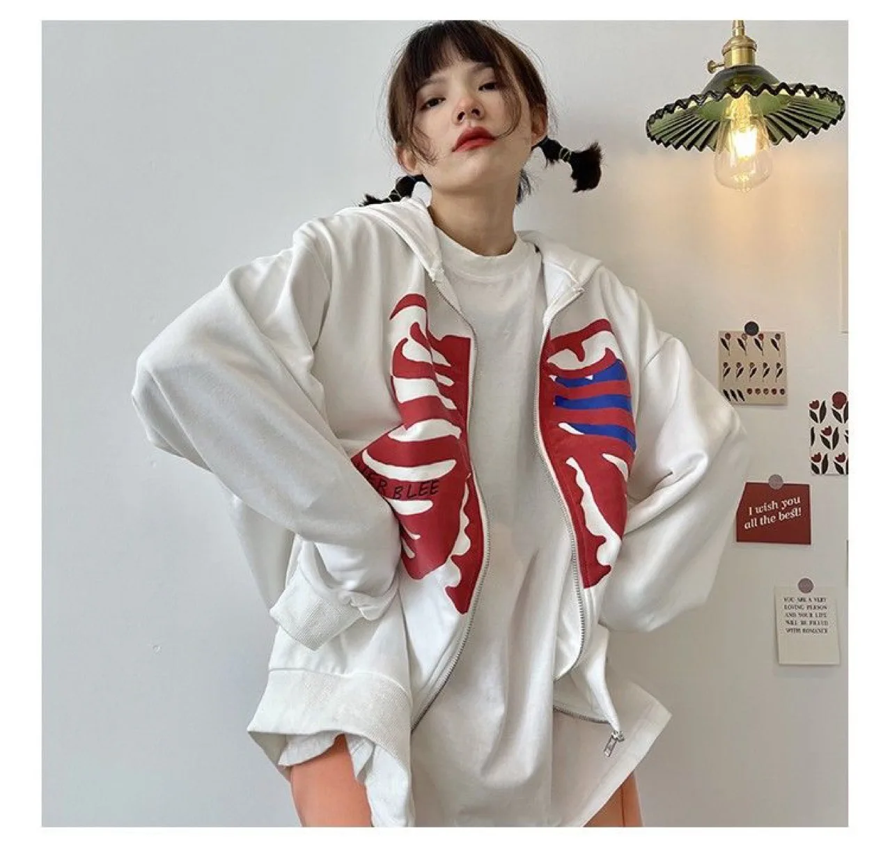 Свободная Толстовка Y2K в Корейском стиле Харадзюку со скелетом и м...
