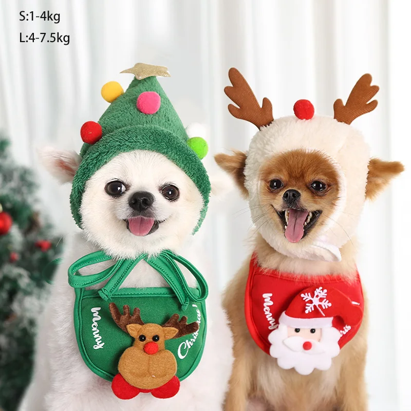 Рождественская шапка для собак и кошек, слюнявчик, Тедди для борьбы...