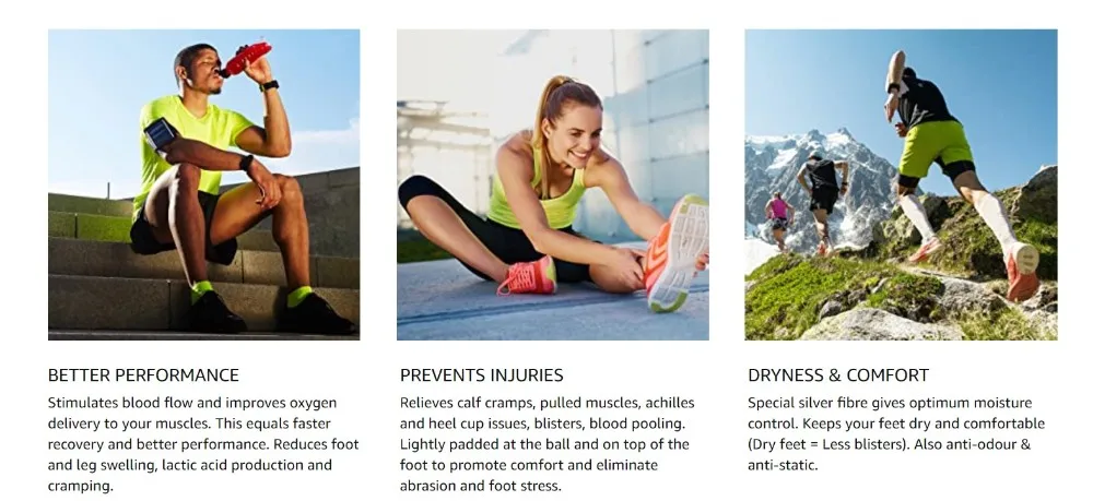 Попрощайтесь с болью! Технология сжатия научно известна, чтобы уменьшить отеки, боль путем улучшения кровообращения. Иногда Компрессионные носки считаются лекарственными средствами. Мы намерены развеять этот миф, сочетая моду, технологии и науку, чтобы обеспечить вам тройной комфорт. Наши компрессионные сошки обеспечивают растягивание на 360 градусов для большей гибкости и долговечности. Идеально подходит для тех, кто сидит в течение длительного периода во время путешествия или на работе.
