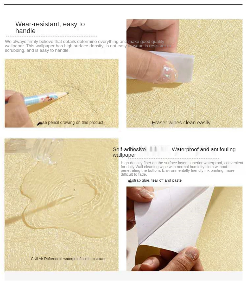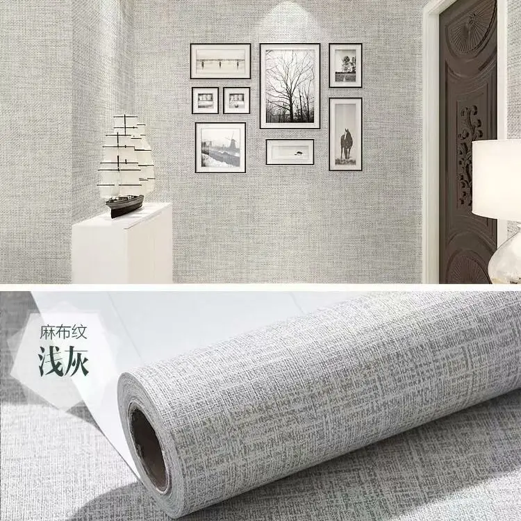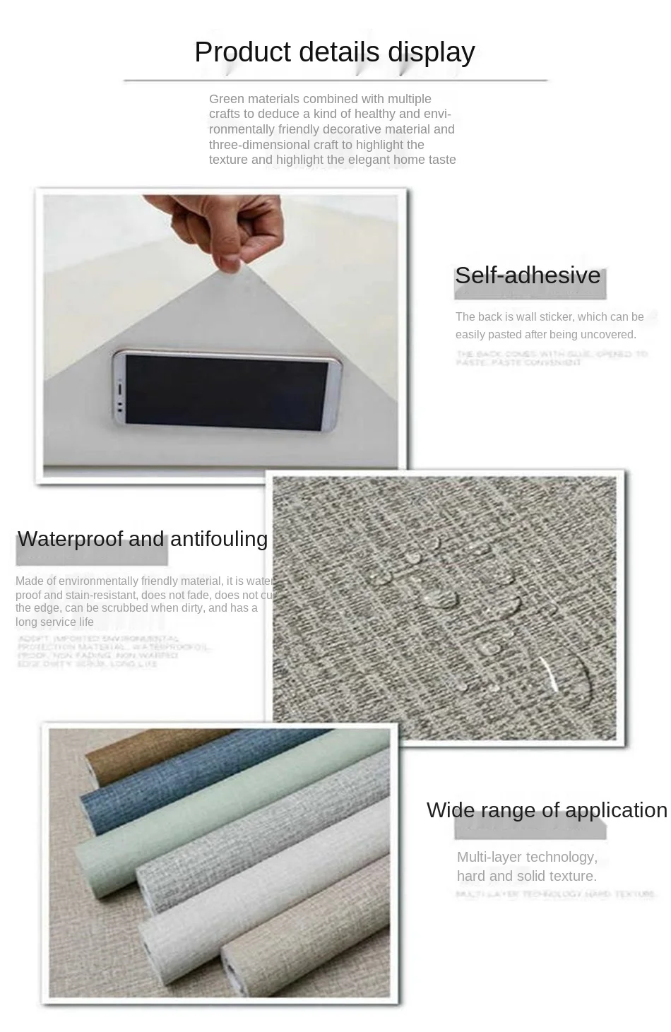 Экстра плотная водостойкая самоклеящаяся настенная бумага с тиснением из шелка и льна для гостиной, спальни, домашнего декора