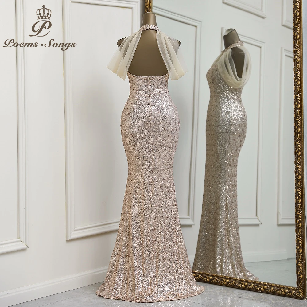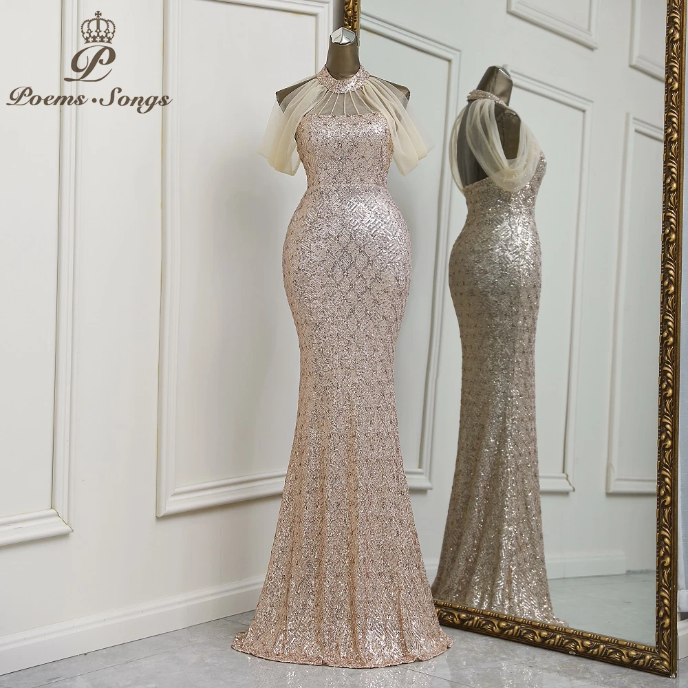 Женское вечернее платье-русалка, розовое и золотистое платье, модель 2021Sexy