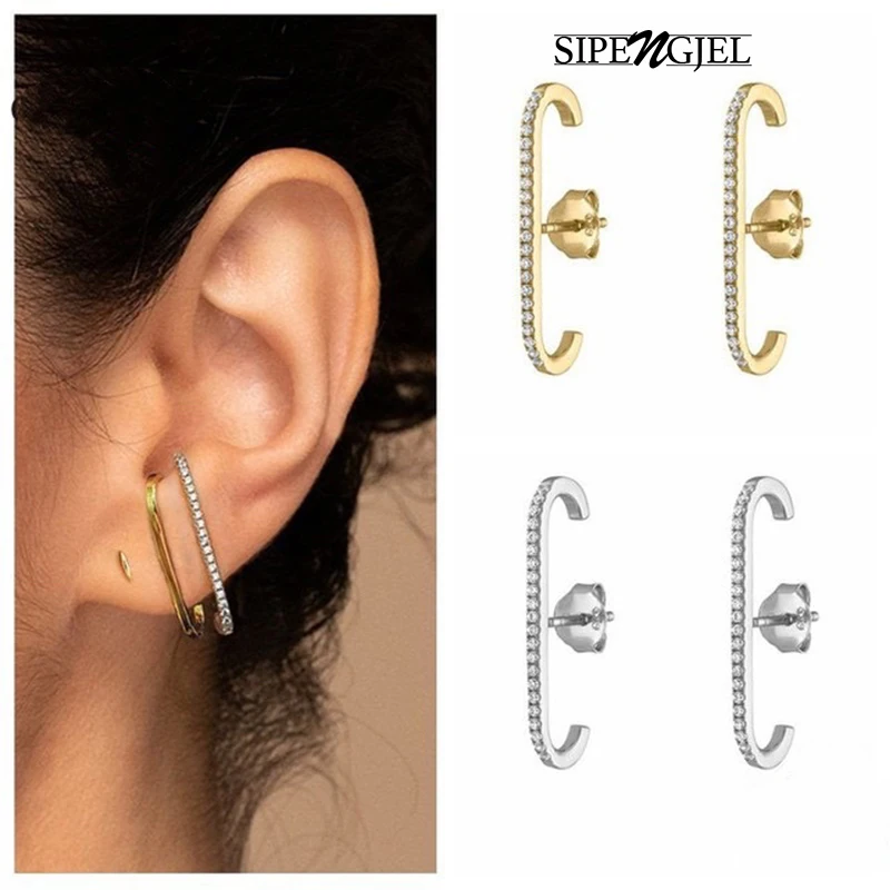 Женские серьги-гвоздики с цирконием SIPENGJEL, серьги золотого и серебряного цвета в европейском и американском стиле