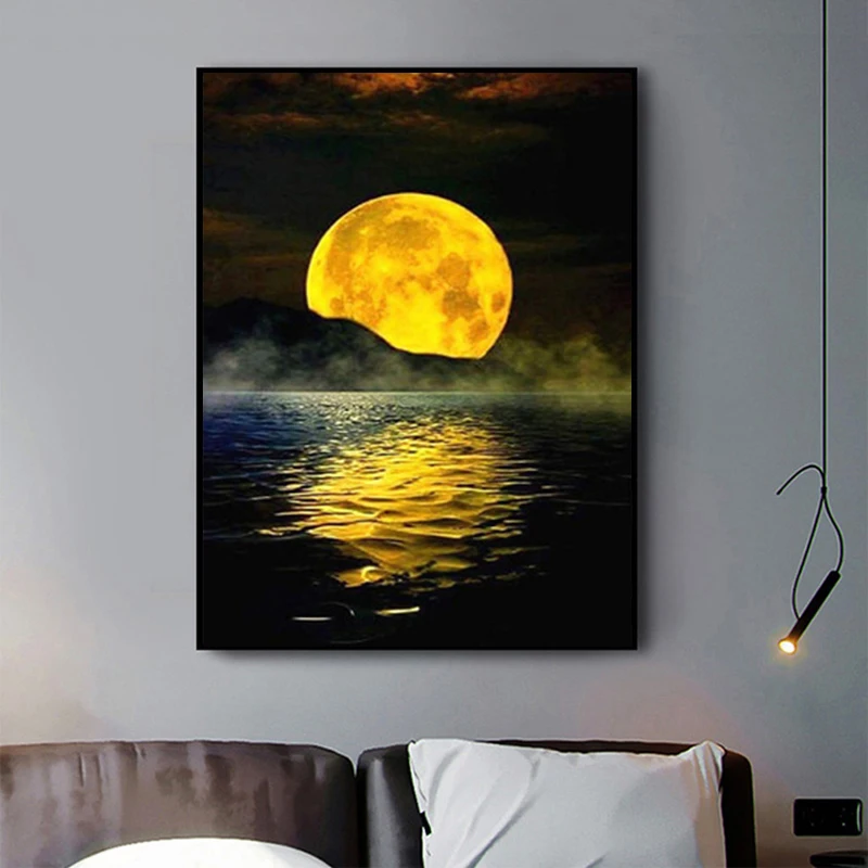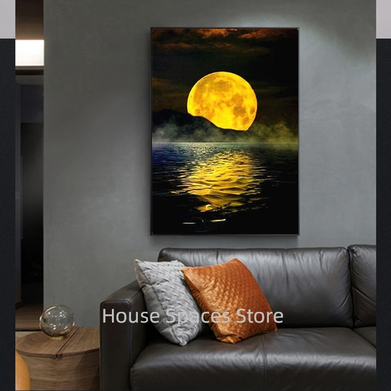 Желтая Красная Луна на море, холст, живопись, абстрактные современные принты и постеры, настенные художественные картины для гостиной, украшение для дома