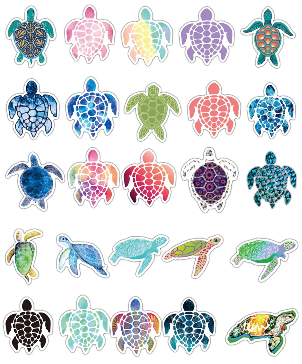 50 шт., водонепроницаемые стикеры в виде морской черепахи, солнца, цветка, бабочки