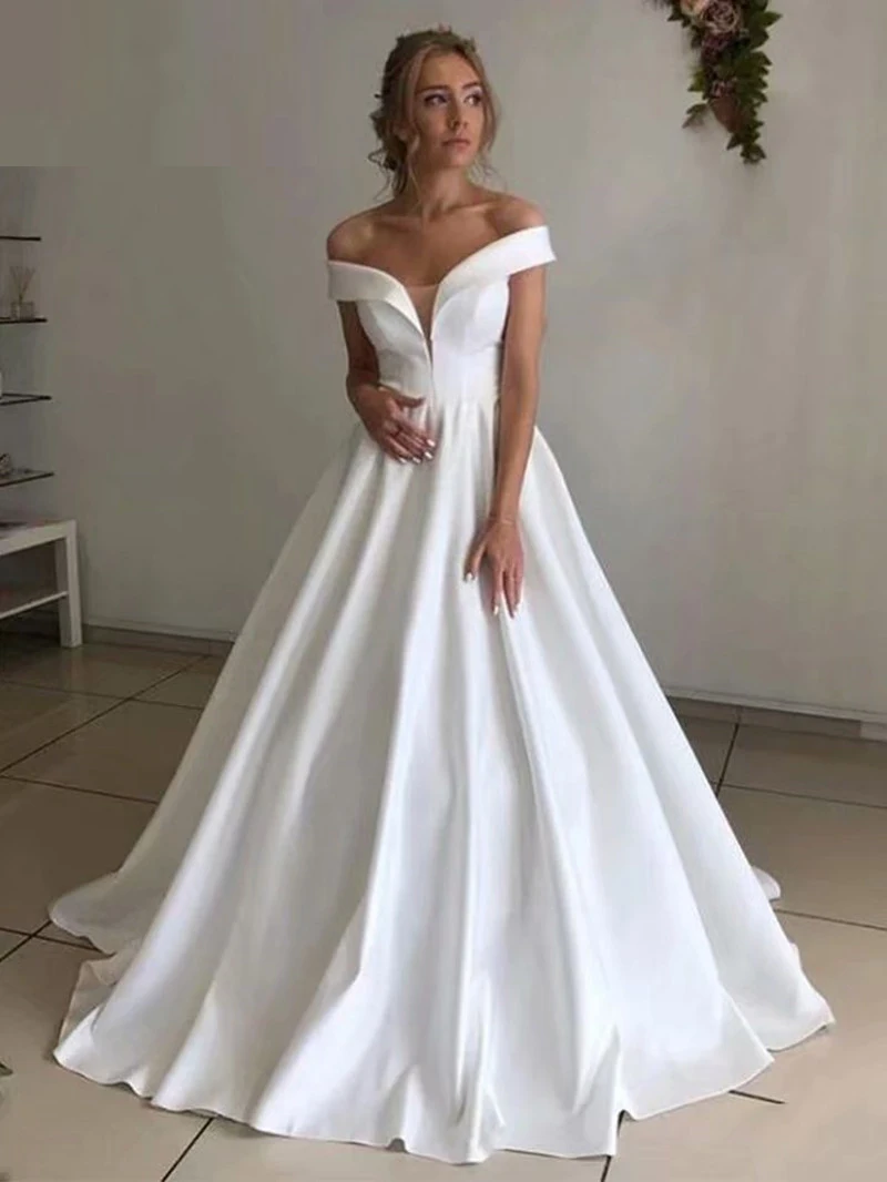 Атласное свадебное платье, вечернее платье с открытыми плечами для ...