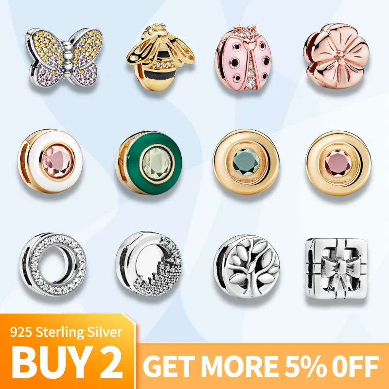 100% Стерлинговое Серебро 925 пробы вечные сверкающие шармы на зажи...