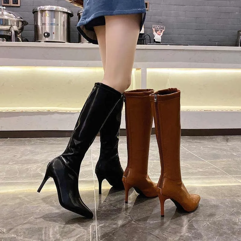 Привлекательные весенние сапоги для танца шеста, женские коричневые сапоги выше колена на высоком каблуке, женские сапоги, женская обувь из лакированной кожи, женские сапоги