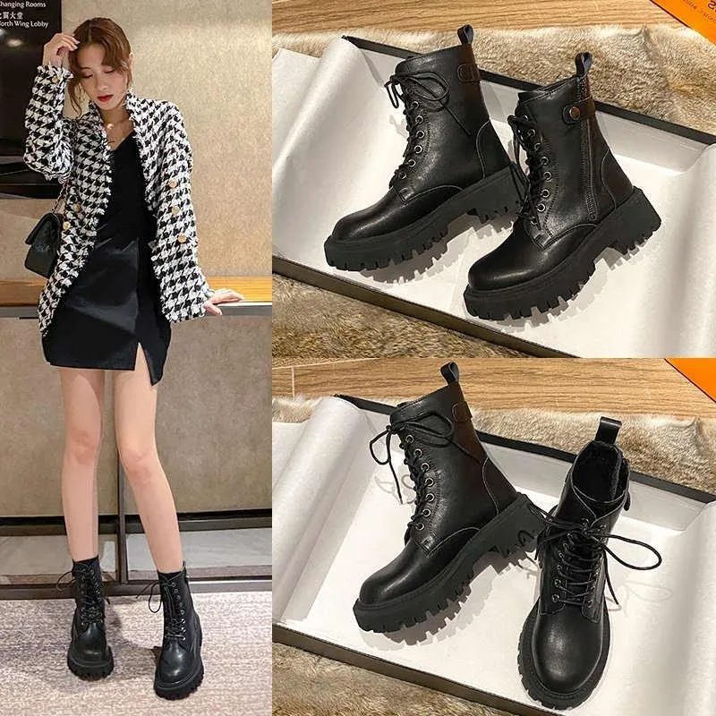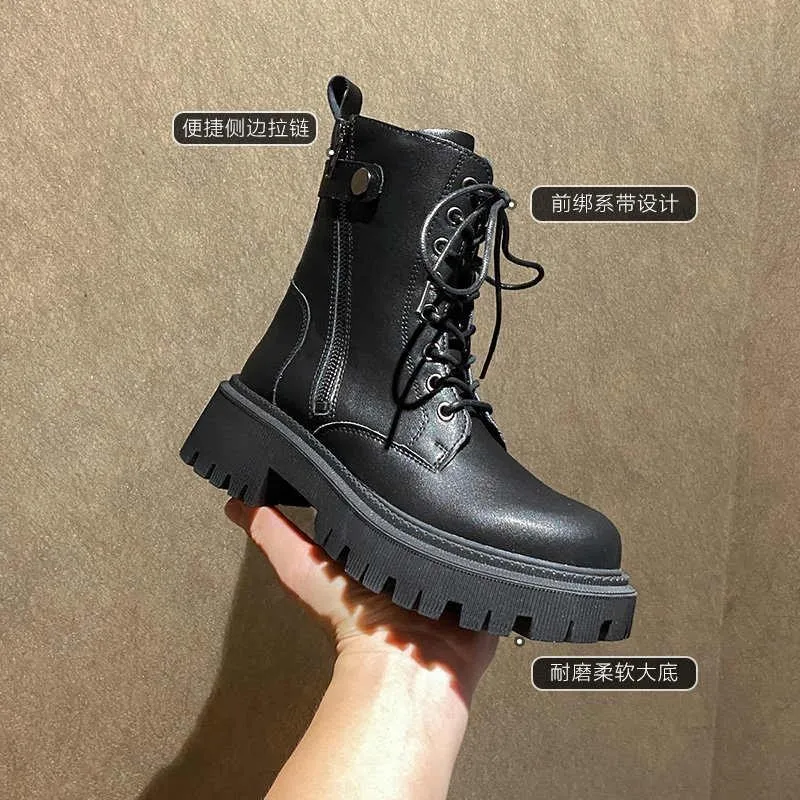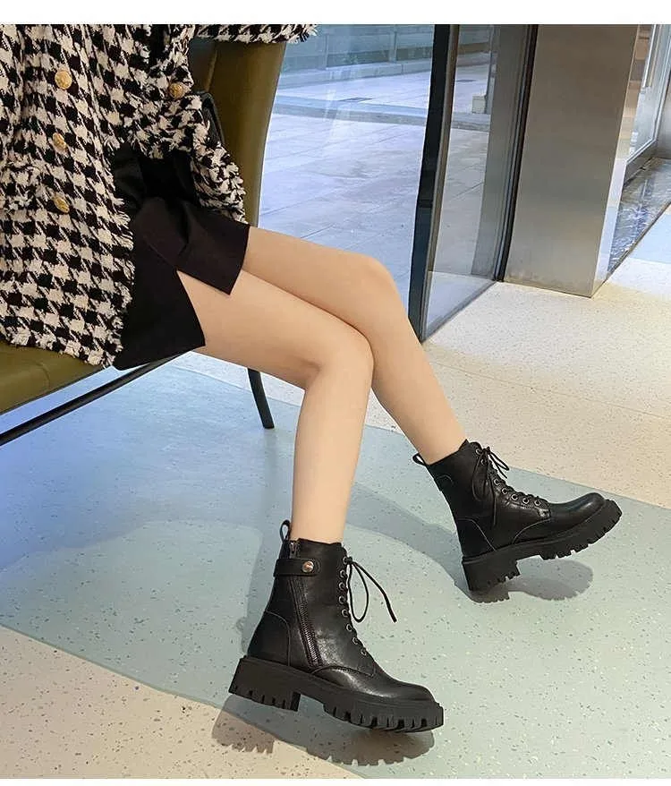 Новые зимние мотоциклетные ботинки на шнуровке, женские ботильоны в британском стиле, готические ботильоны на низком каблуке в стиле панк, женская обувь