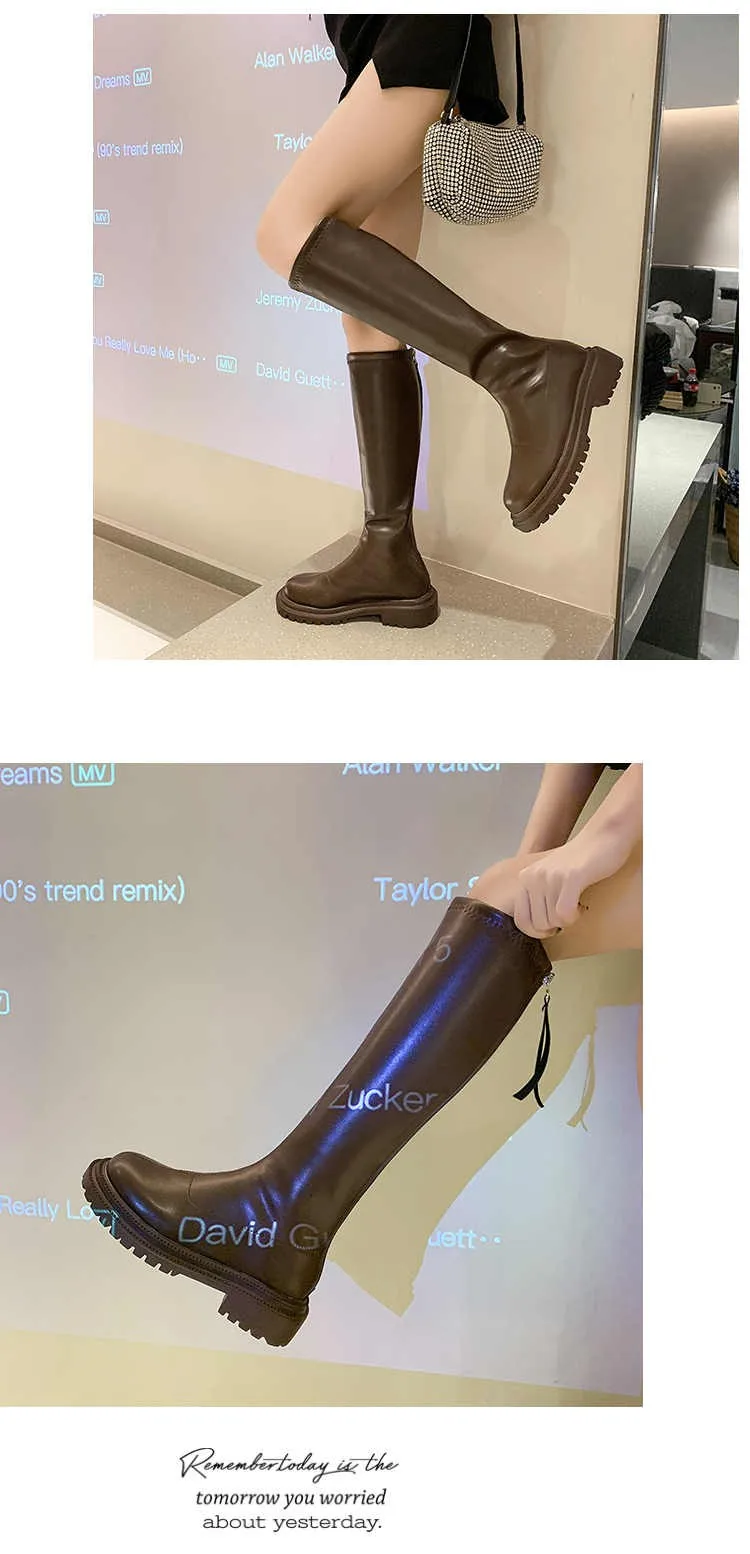 Новинка 2021, Зимние флисовые сапоги, женские высокие и тонкие сапоги до колена на толстой подошве, брендовые Дизайнерские Сапоги на молнии для женщин