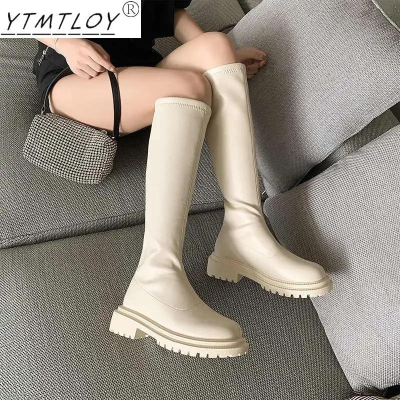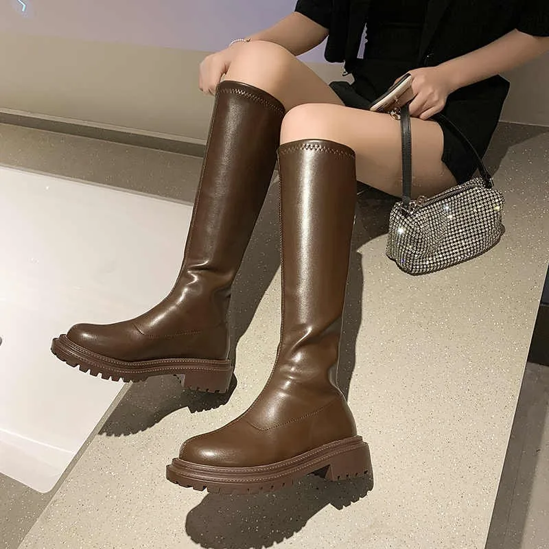 Сапоги до колена из искусственной кожи на толстой подошве, женские ...