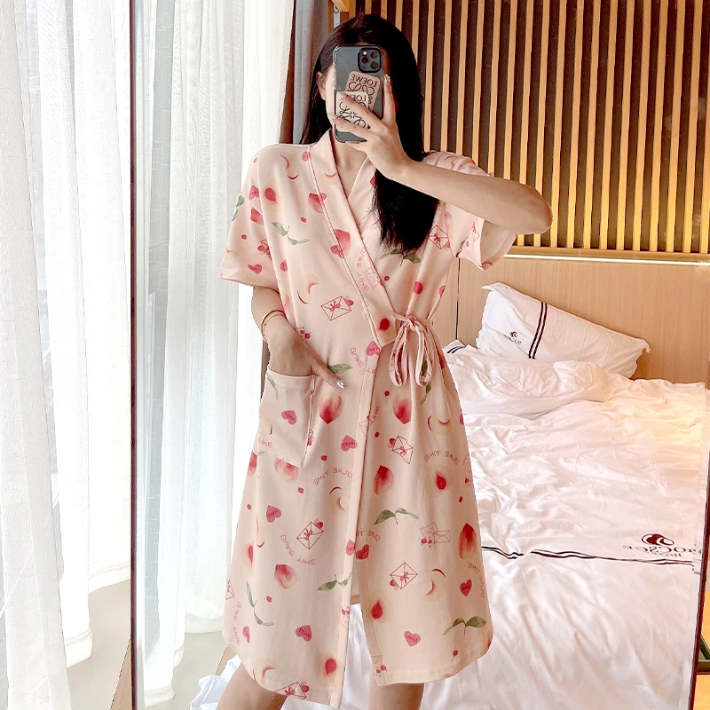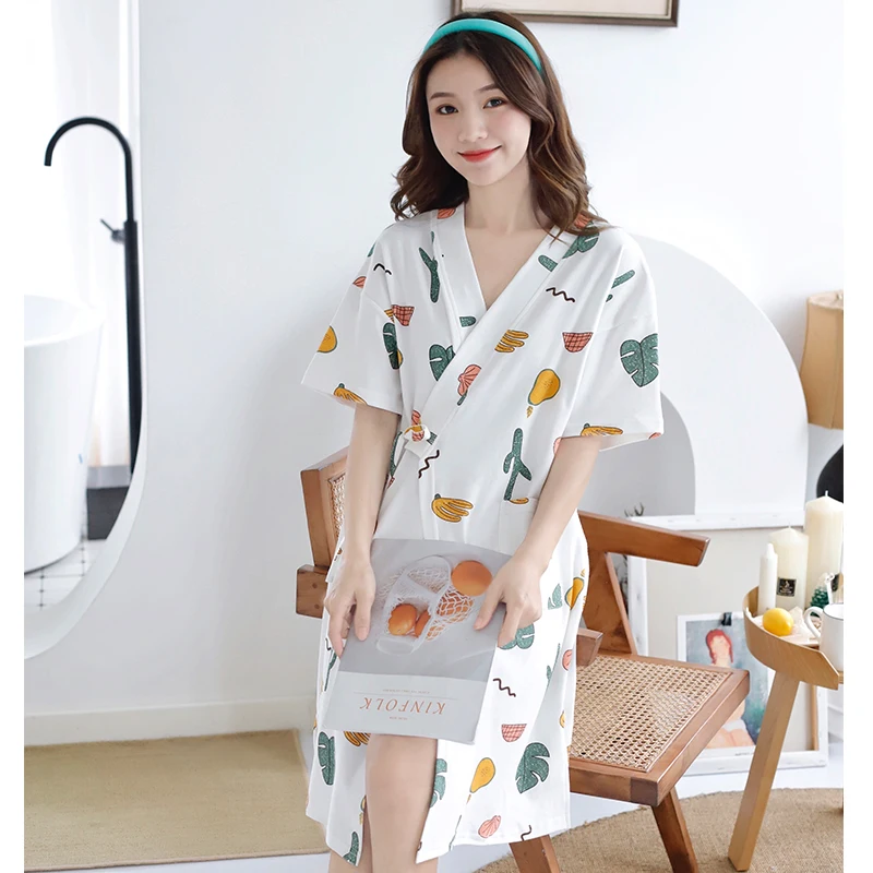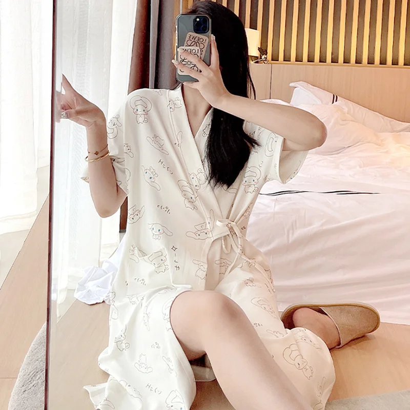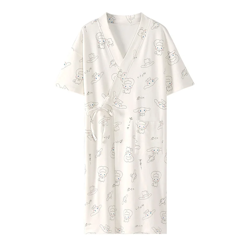 Халат женский мешковатый с мультяшным принтом, милая мягкая Пижама, модный халат с коротким рукавом в Корейском стиле, кимоно, белый, на лето