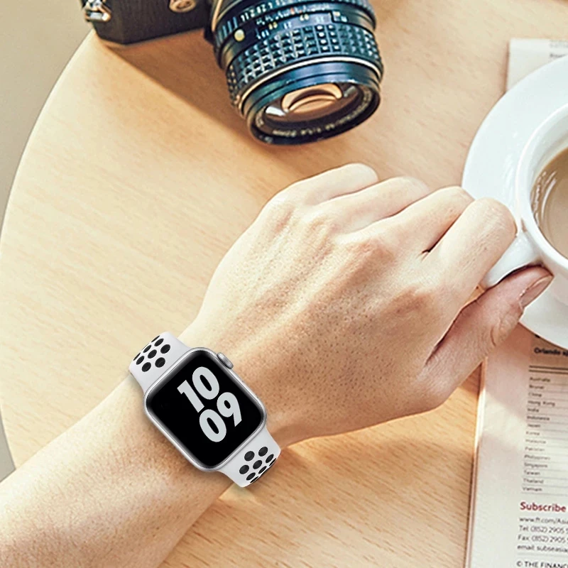 Ремешок силиконовый для Apple Watch Band 44 мм 40 мм, Воздухопрониц...