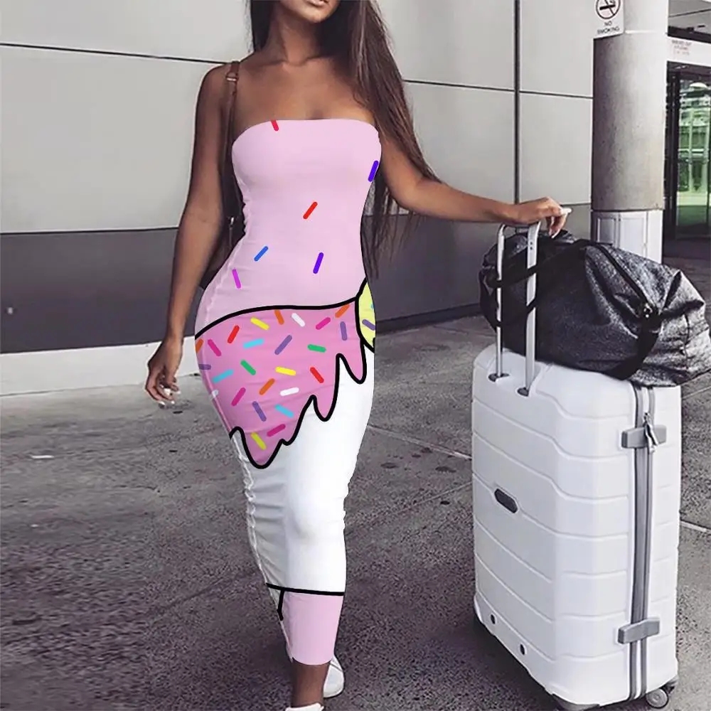Платье клубничное KYKU, женское облегающее платье без рукавов, с ри...