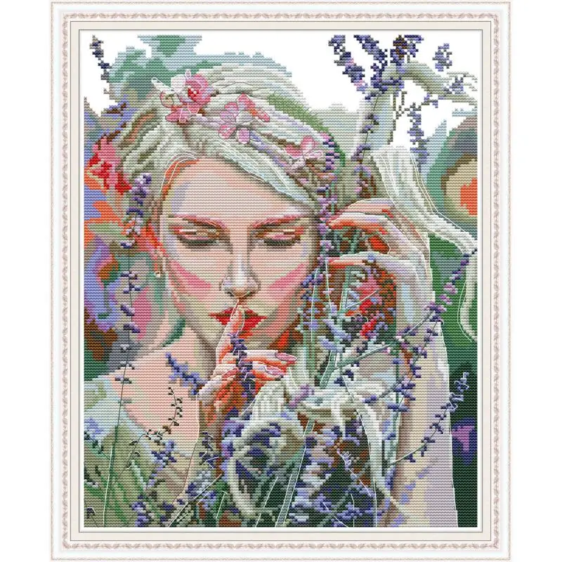 Набор для вышивки крестиком 14 карат, для прослушивания, тишина, девушка, женщина и лаванда, ручная работа, домашний декор