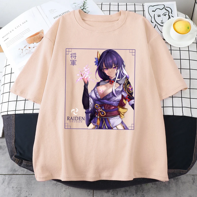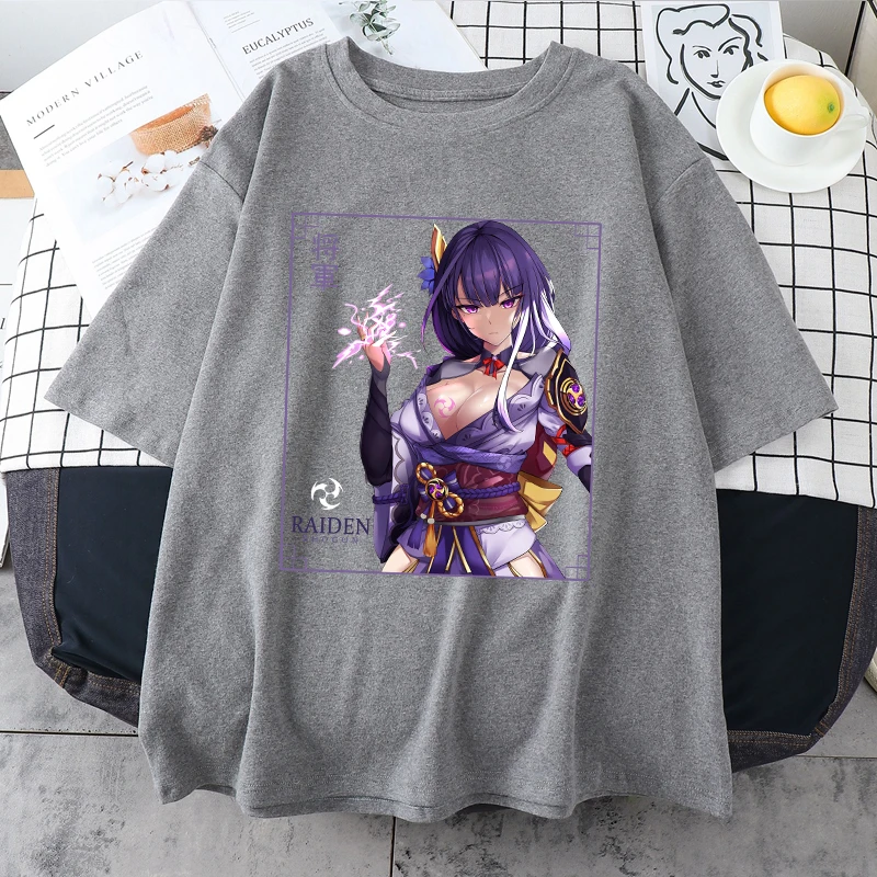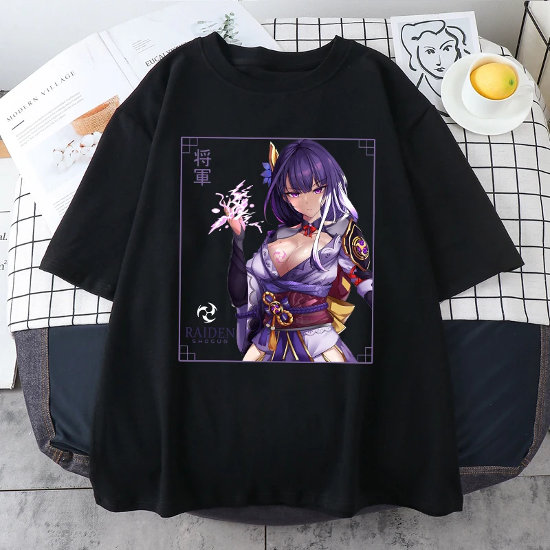 Футболка женская хлопковая с принтом, уличная одежда Zhongli Genshi...