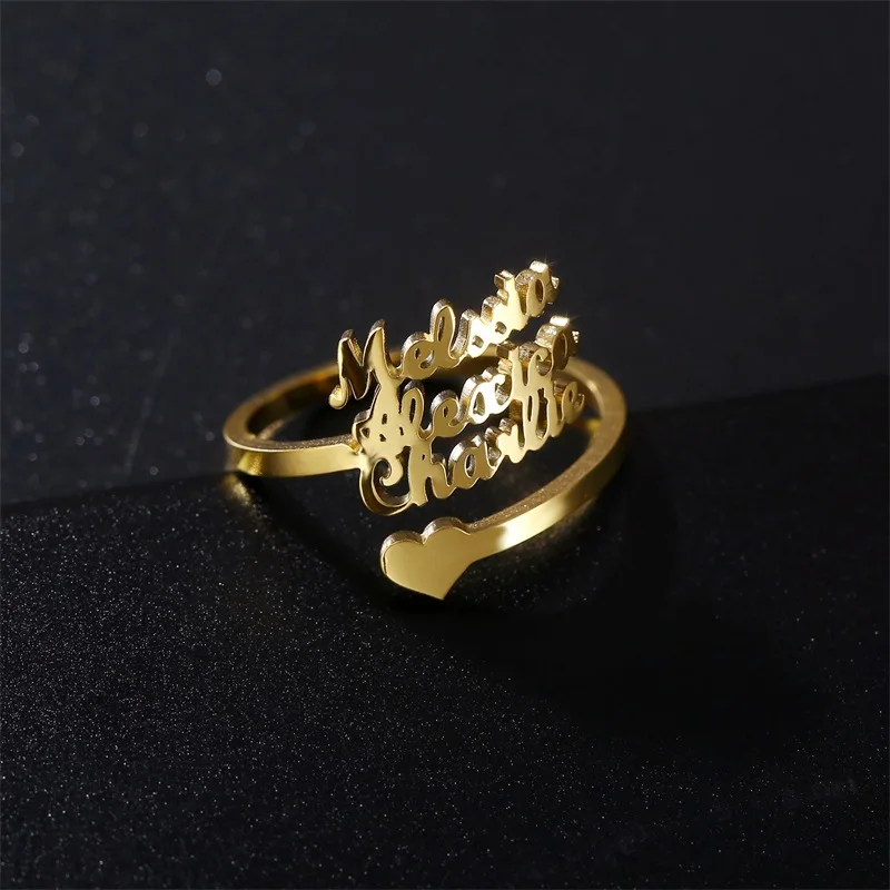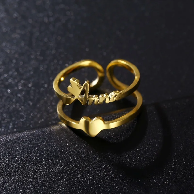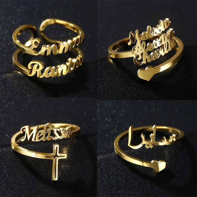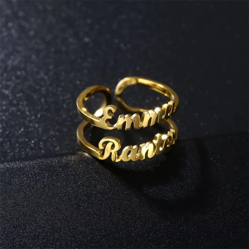 Индивидуальные двойные кольца с именем для женщин, индивидуальное кольцо, очаровательные парные золотые ювелирные изделия из нержавеющей стали, свадебные подарки