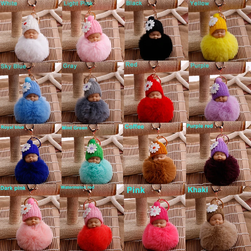 Новинка, брелок для ключей в виде спящей куклы, помпон из искусственного меха, брелок для ключей в машину, детская игрушка, женский брелок для ключей, подвеска в сумку для детей