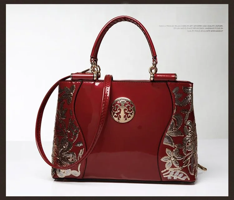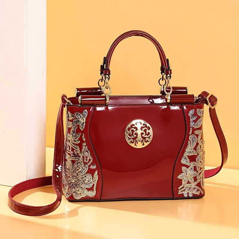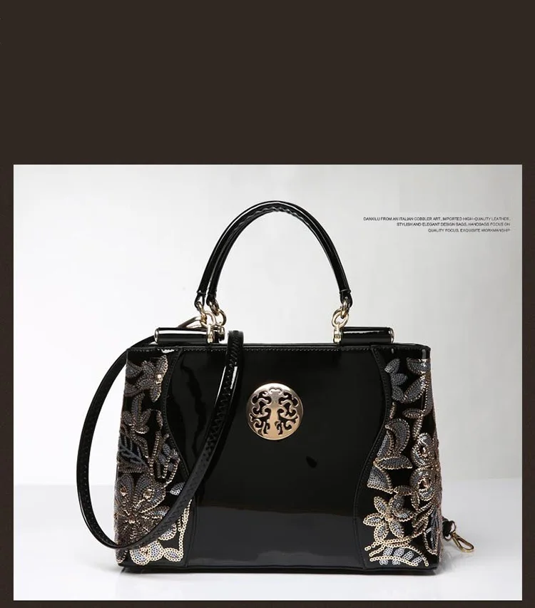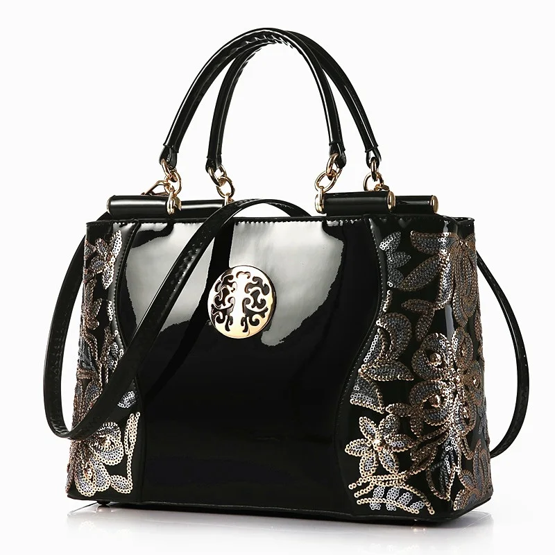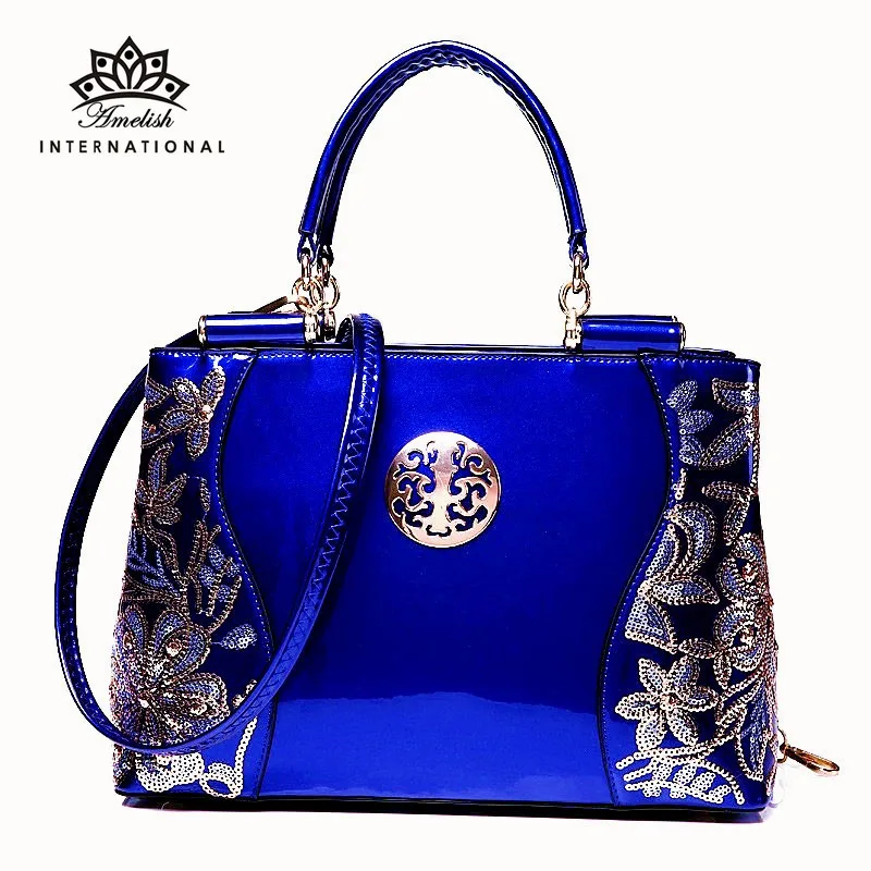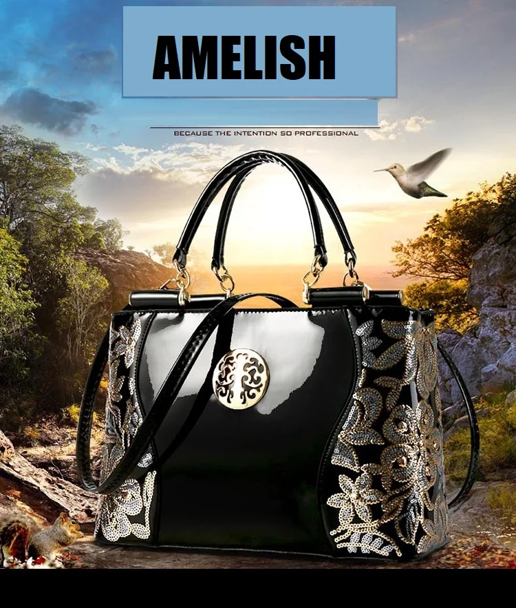 Сумка AMELISH женская из лакированной кожи, модный саквояж на плечо для офиса, сумочка-тоут с вышивкой для вечеринки