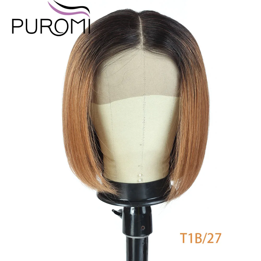 Парик для чернокожих женщин Puromi, короткие бразильские Многослойные волосы без повреждения кутикулы, с челкой, 1B цвет