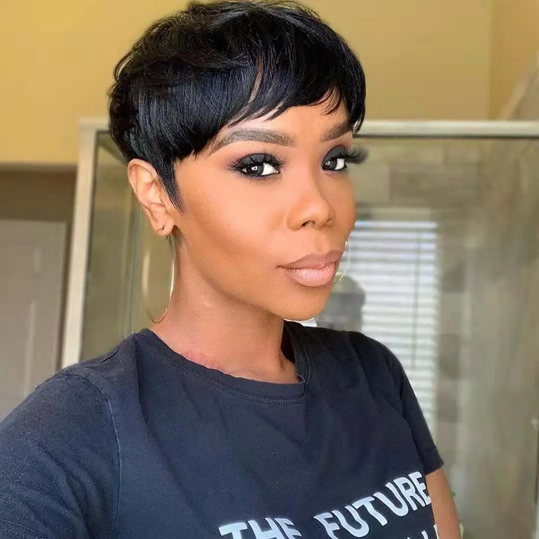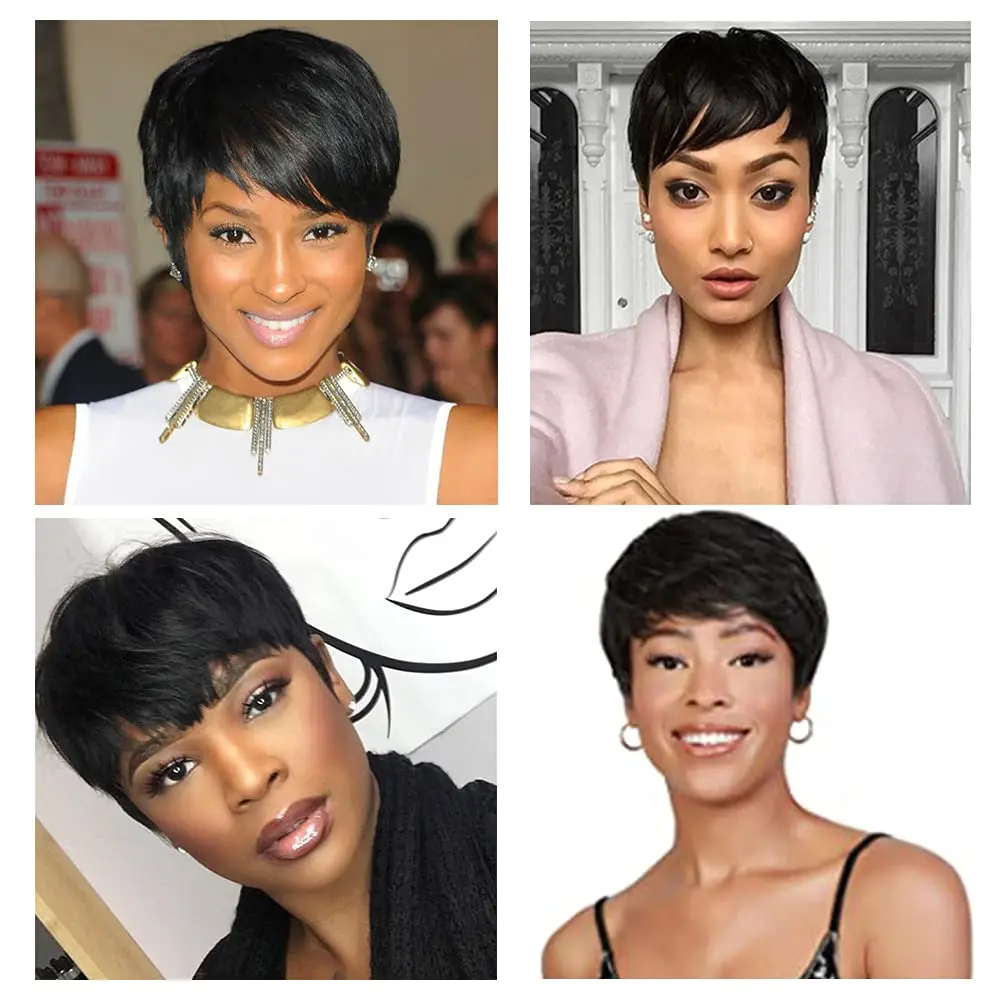 Парик из человеческих волос с коротким вырезом фея, бесклеевые перу...