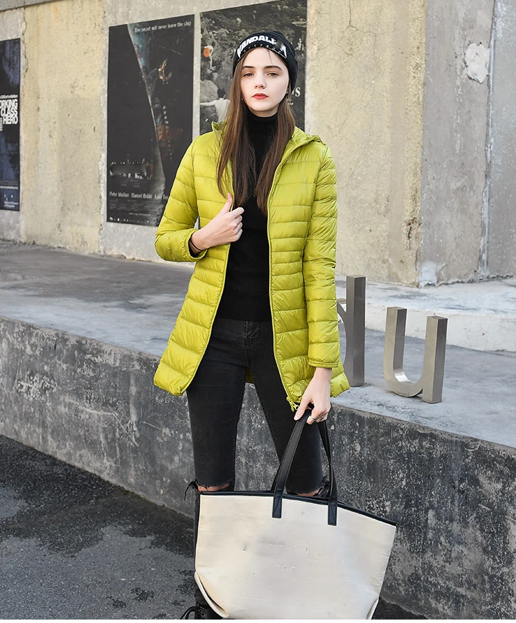 Длинный пуховик, женский зимний ультралегкий пуховик, женское пухов...