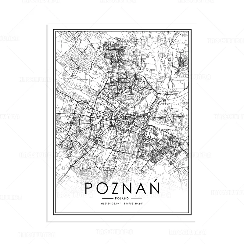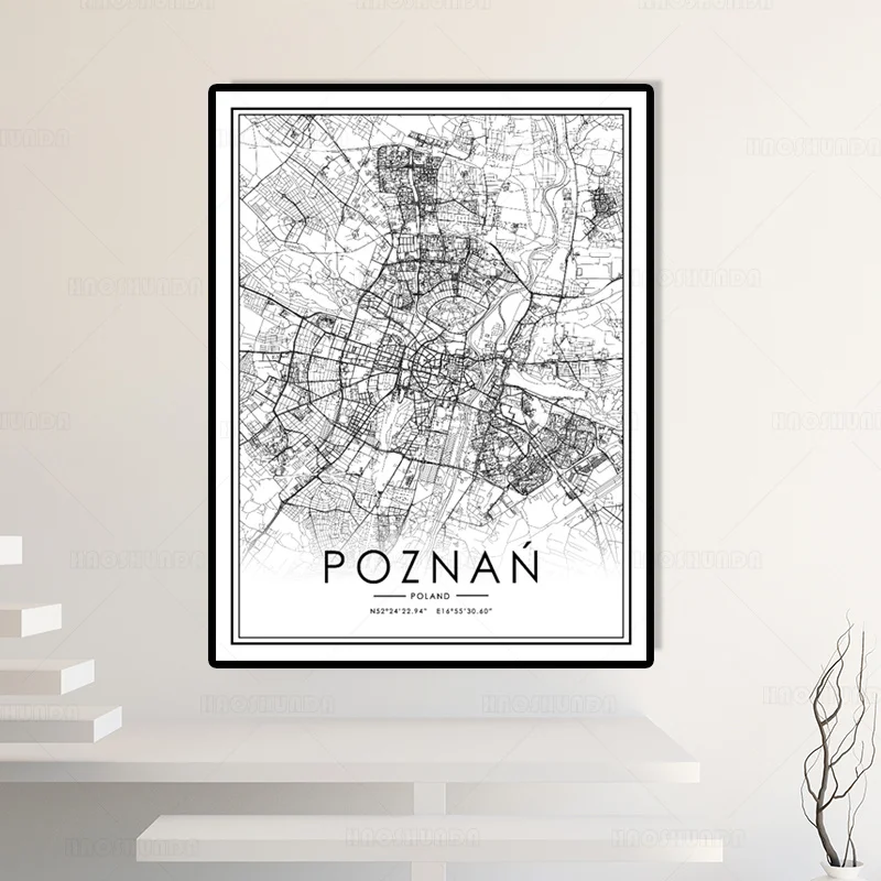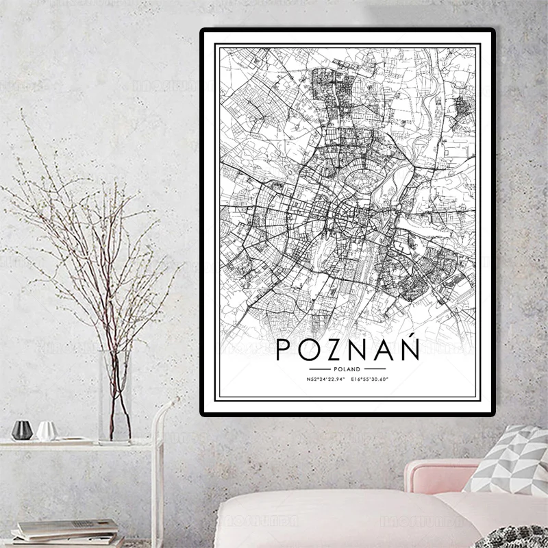 Настенная картина карта городов мира POZNAN, черно-белые плакаты, Картина на холсте, картина для декора гостиной