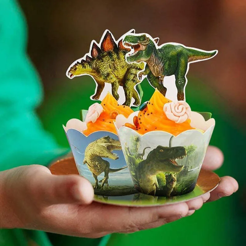 24 шт динозавр кекс Топпер обертки для пирожных для Юрского периода мир День Рождения украшения мальчик дети ребенок душ пользу
