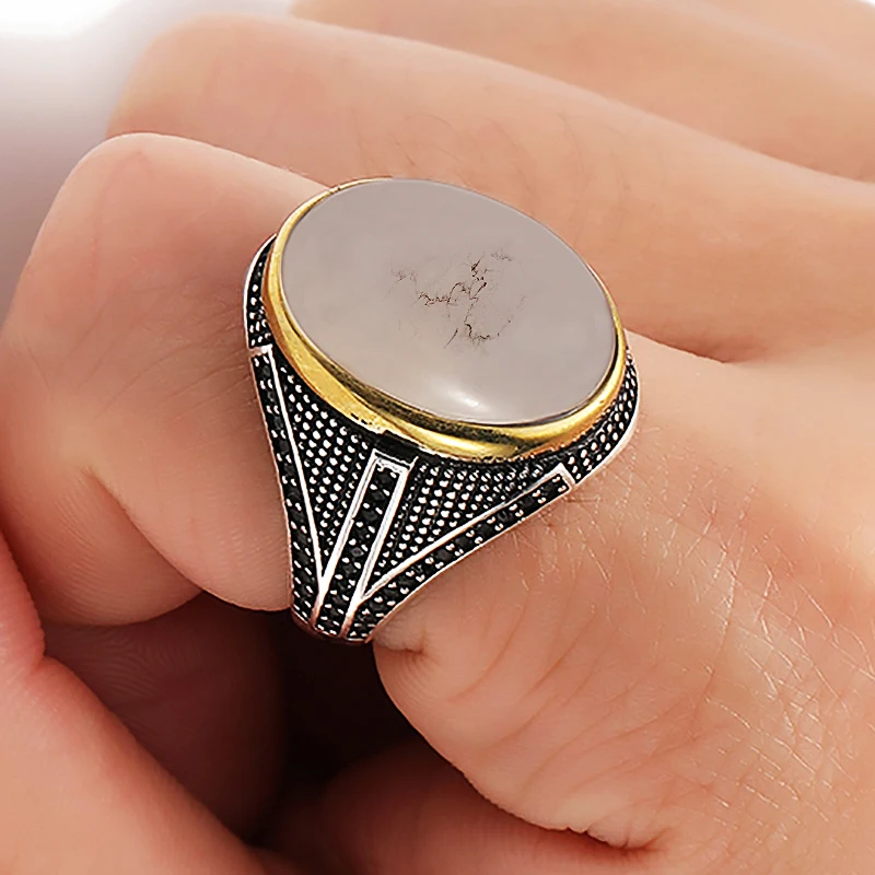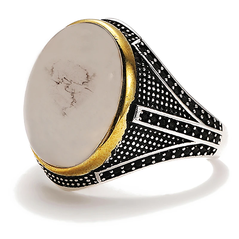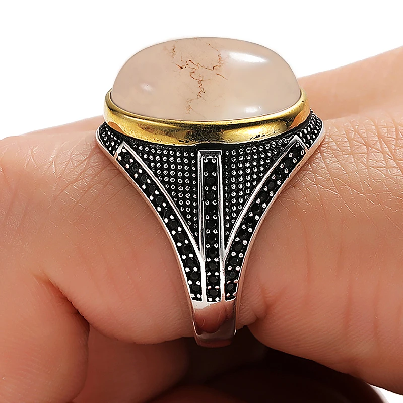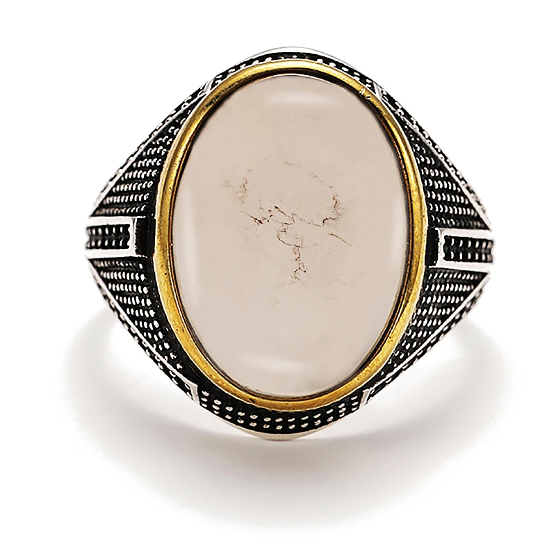 Модное индивидуальное Винтажное кольцо с белым камнем с черным камнем для мужчин ювелирные изделия