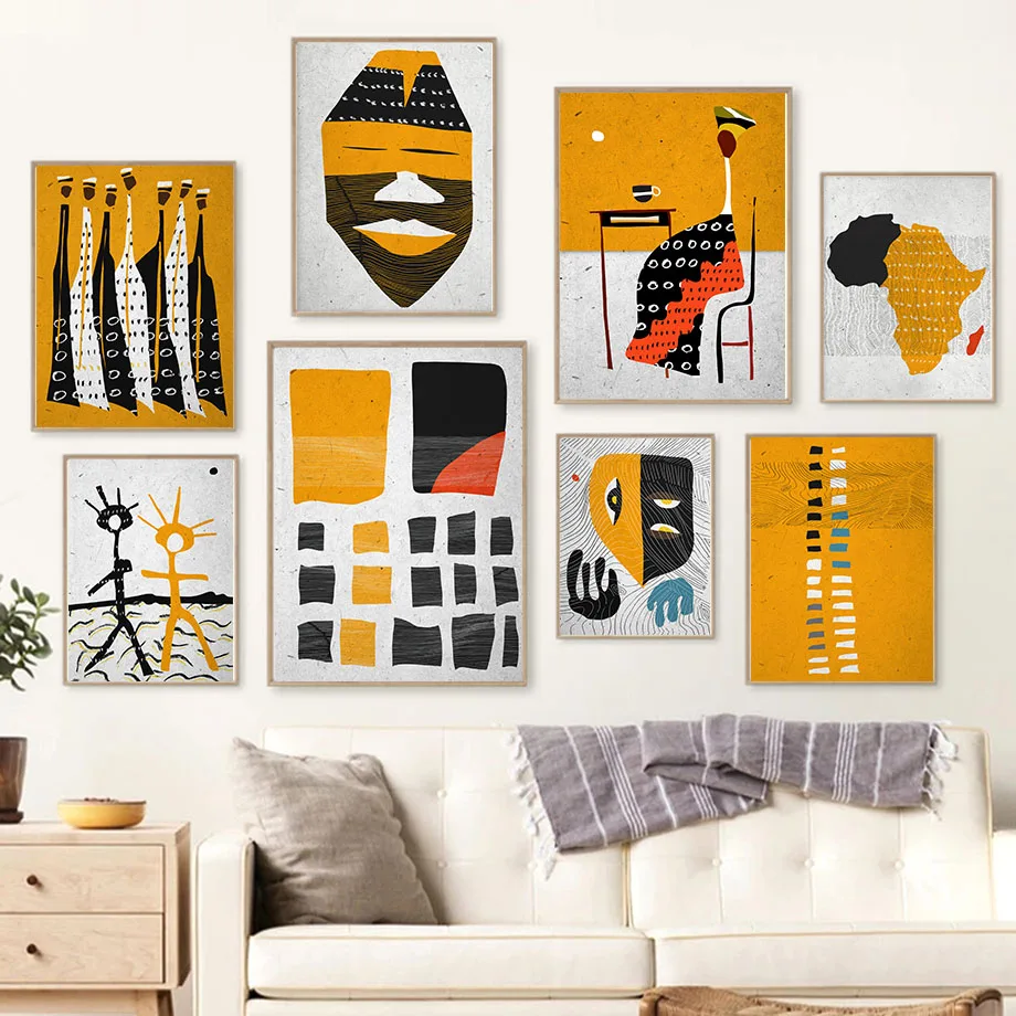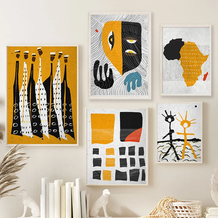 Абстрактный портрет черной женщины Карта Африки настенная живопись холст скандинавские плакаты и принты настенные картины для декора гостиной