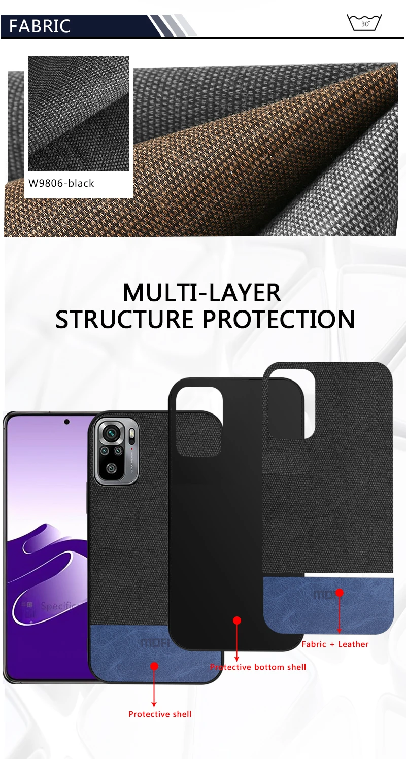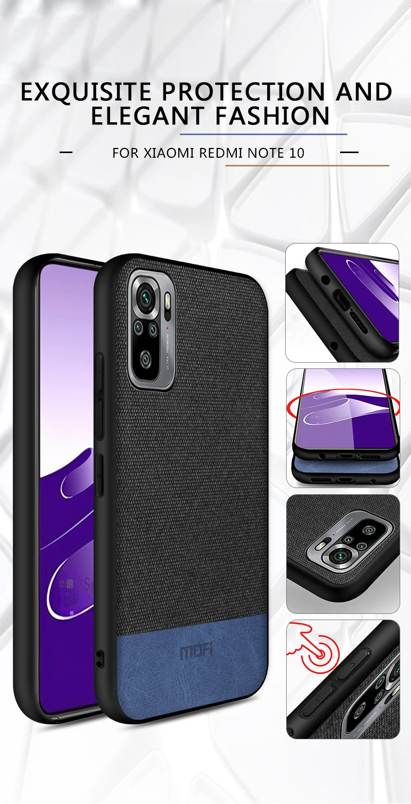 Чехол MOFI для Xiaomi Redmi Note 10 s, роскошный тканевый кожаный чехол-накладка, противоударный черный, синий чехол для Redmi Note 10 S, чехол