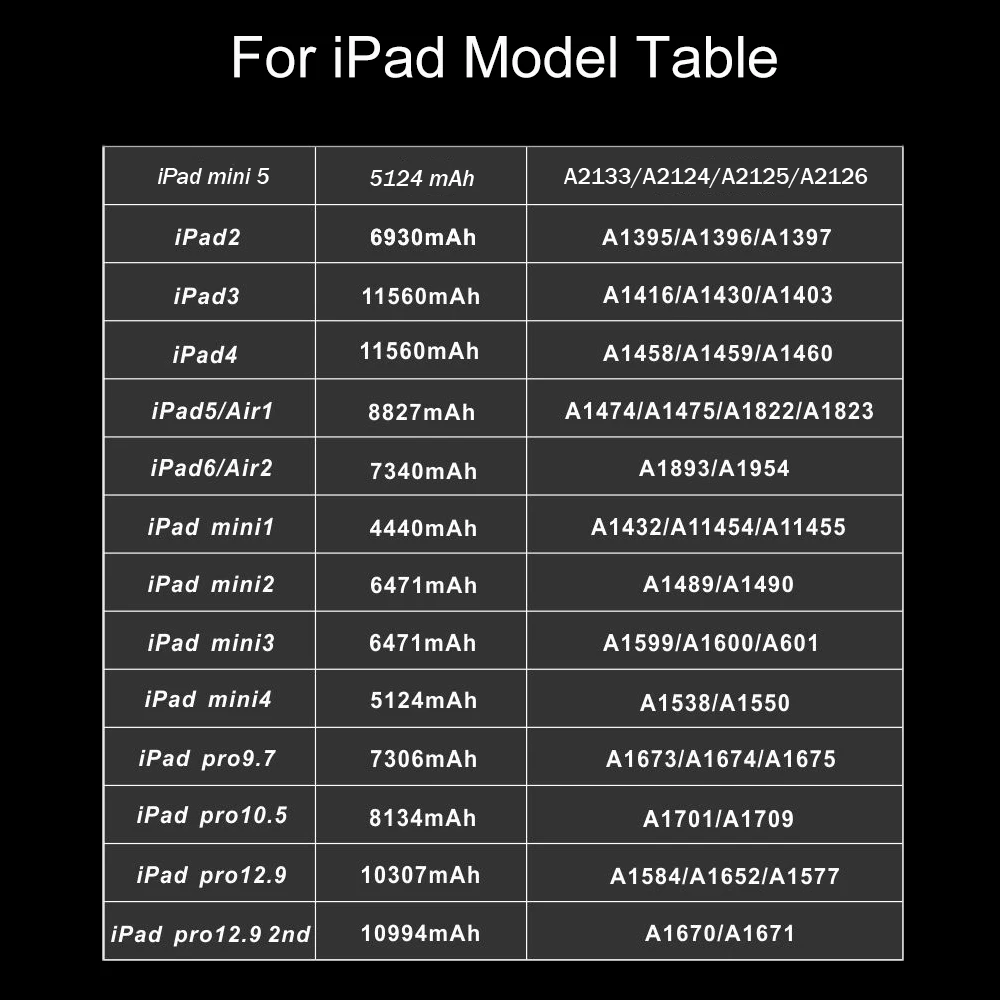 Аккумулятор для iPad 2, 3, 4, 5, 6, Air 1, Air 2, iPad Mini 1, 2, 3...