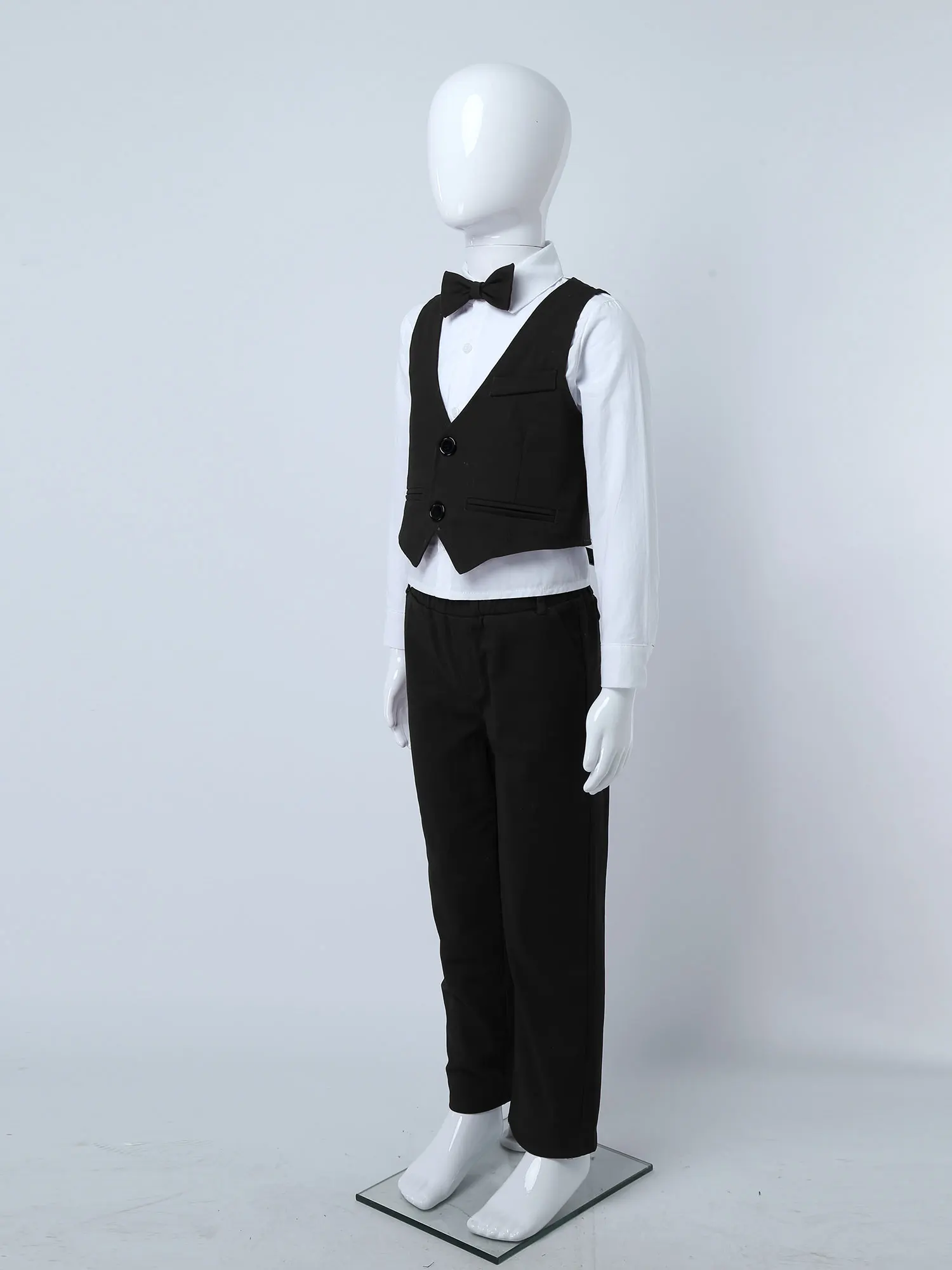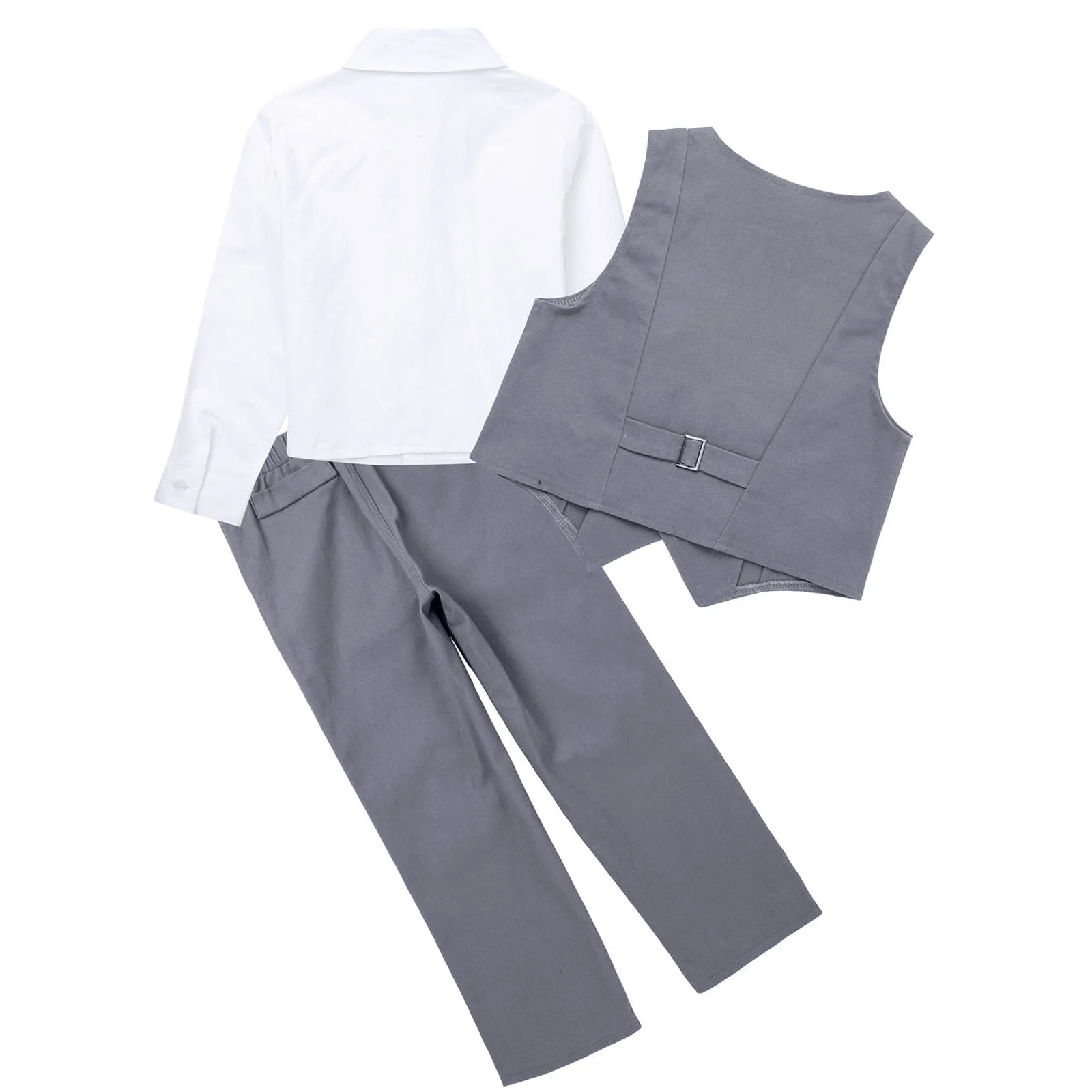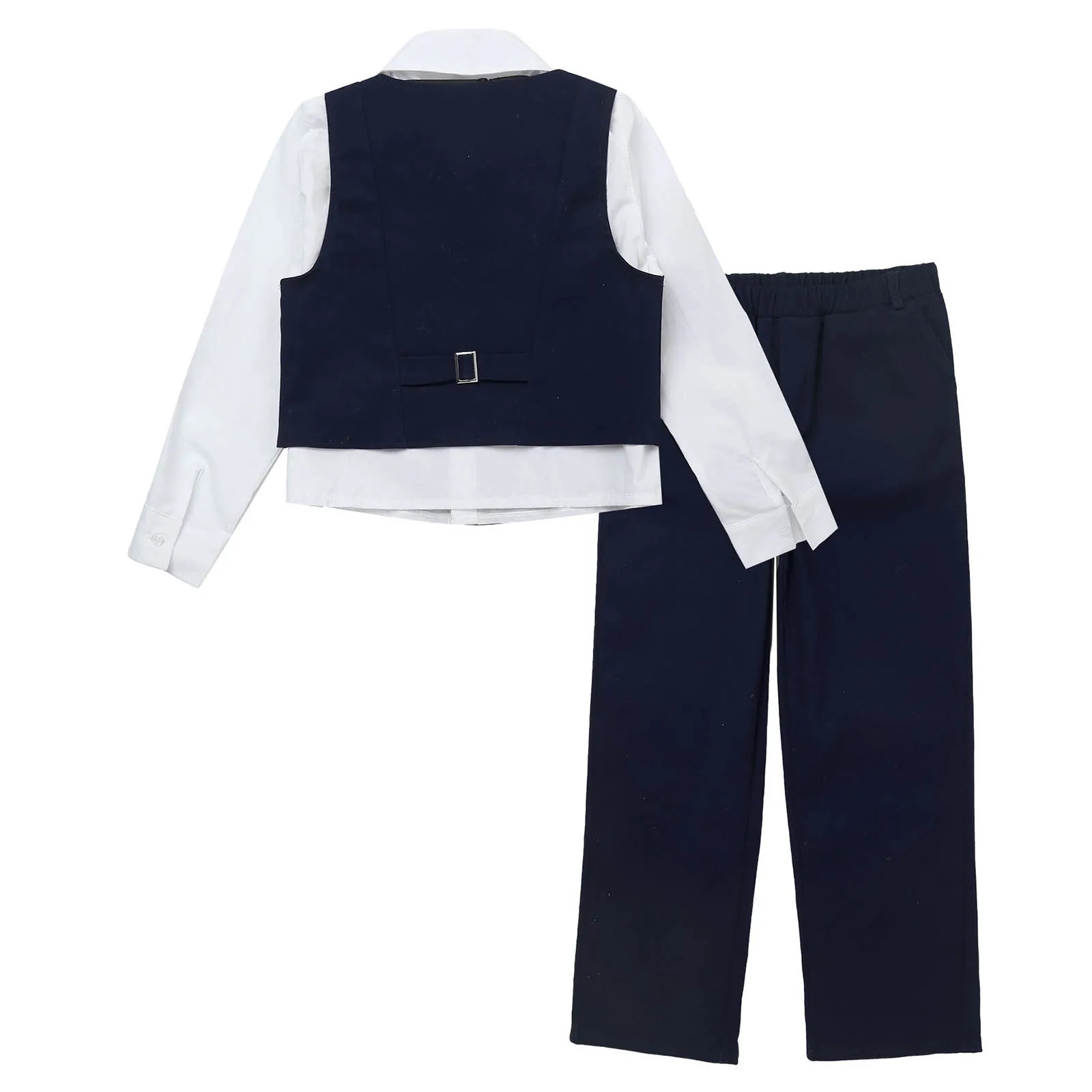 Детские праздничные костюмы для мальчиков, 4 предмета рубашка с длинными рукавами и ОТВОРОТОМ однобортный жилет без рукавов с v-образным вырезом комплект с эластичным поясом и бантом для свадьбы, дня рождения, #2T-10
