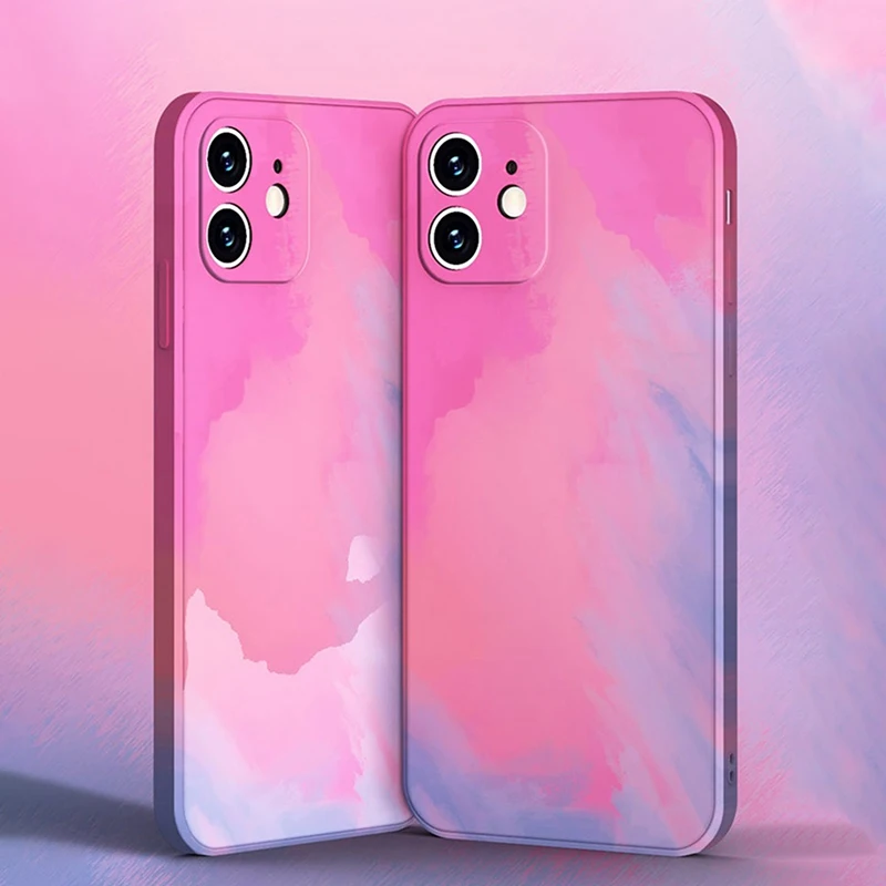 Жидкий силиконовый акварельный чехол для iPhone 12, 11 Pro Max, XS,...