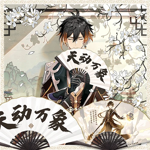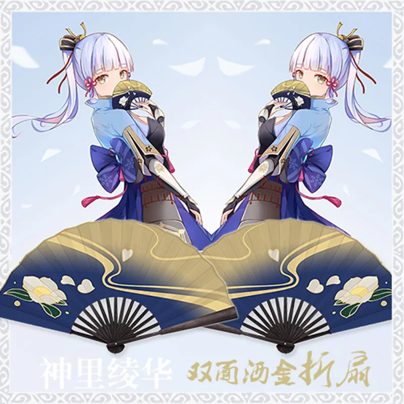 Складной веер Game Genshin Impact Kamisato Ayaka, ручной веер из двусторонней ткани для танцев, Ручной Веер, реквизит для костюма, реквизит для косплея, подарки