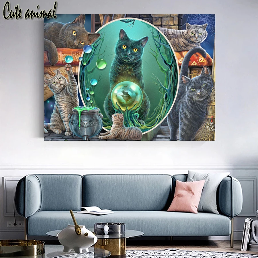 5D алмазная живопись, Черный кот, квадратная вышивка, сделай сам, алмазная вышивка, распродажа, рисунок животных, украшение на Хэллоуин, подарок