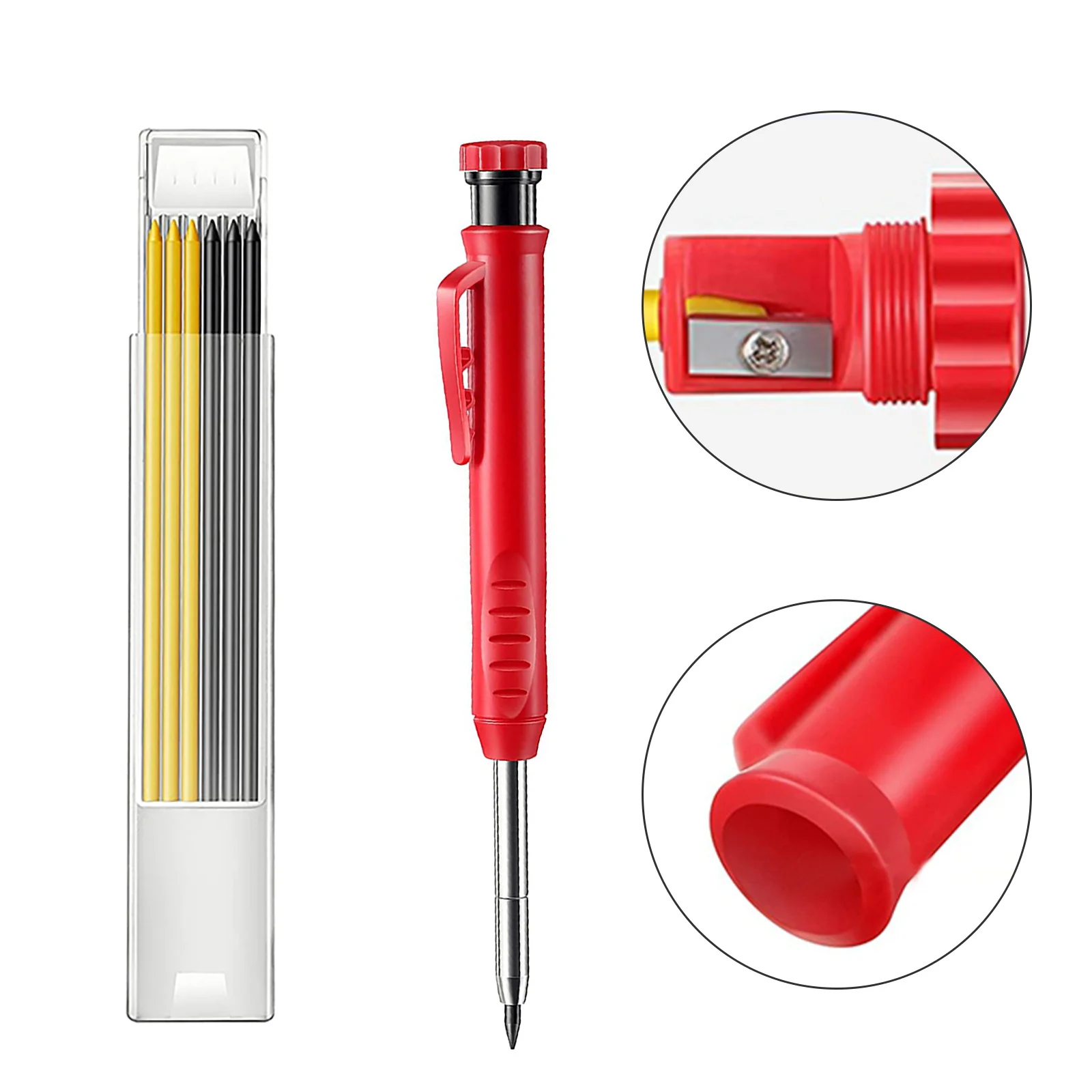 Твердый плотничный карандаш с 6 заправляемыми выводами, встроенная точилка с глубоким отверстием, механический карандаш, маркер, маркировочный инструмент