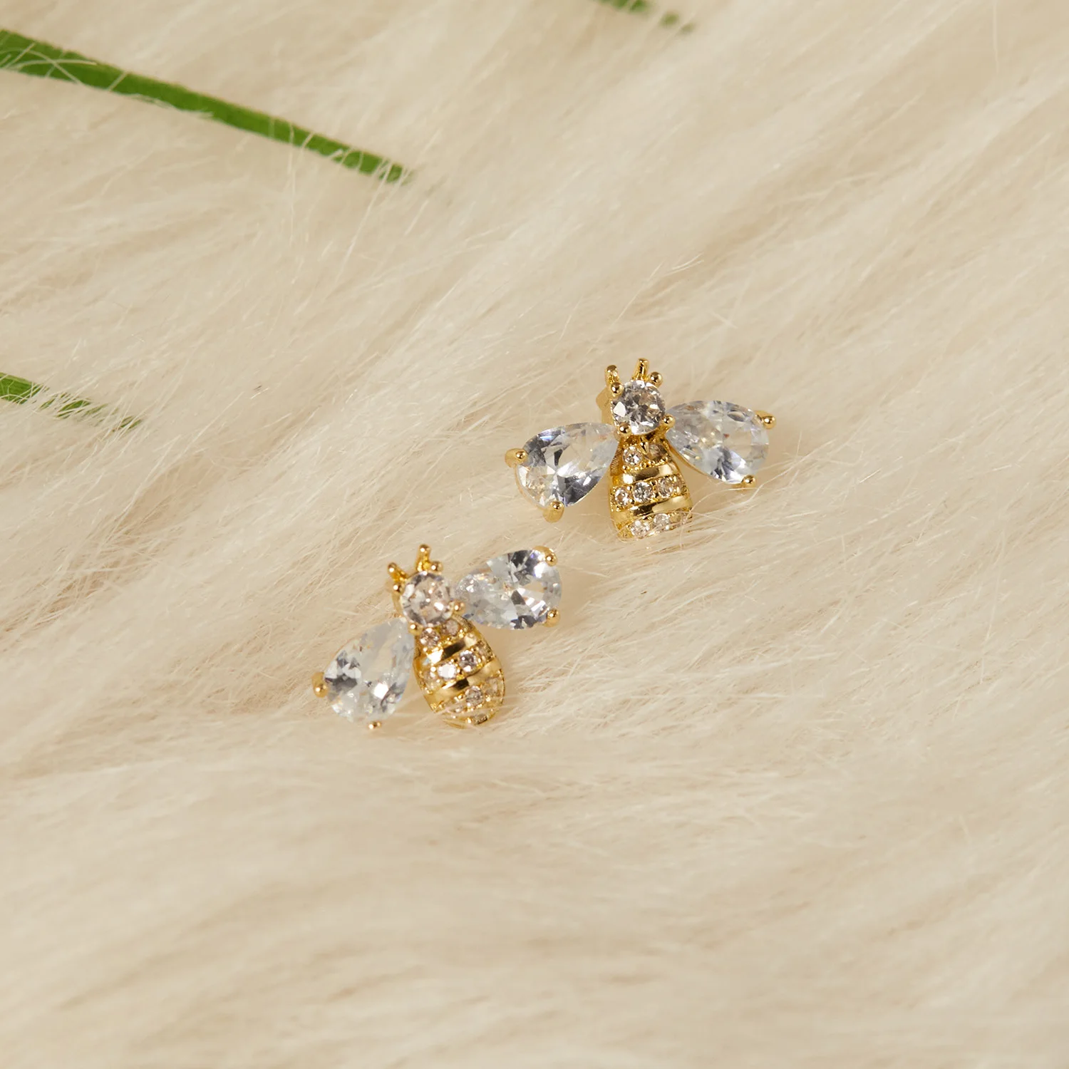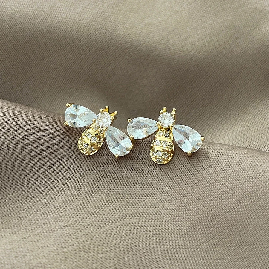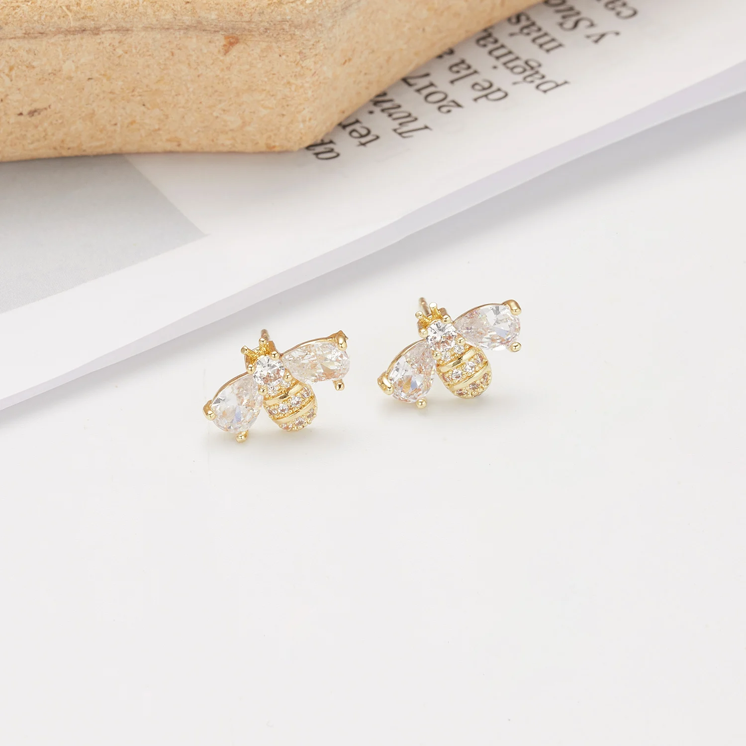 Серьги-гвоздики женские, с маленьким цветком и кристаллом, 2021, гвоздики пчелка, из блестящего циркония